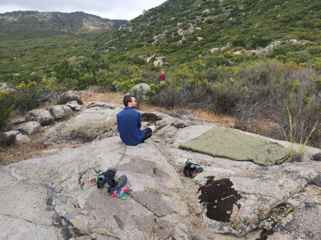 Mit uns zelteten Hana und Lucy. Abends kam noch James aus Vancouver zum Quatschen dazu, welcher gerade an seinem ersten Tag 28 Meilen hinter sich hatte. Wir konnten Bob und alle feuchten Gegenstände in der Abendsonne trocken.