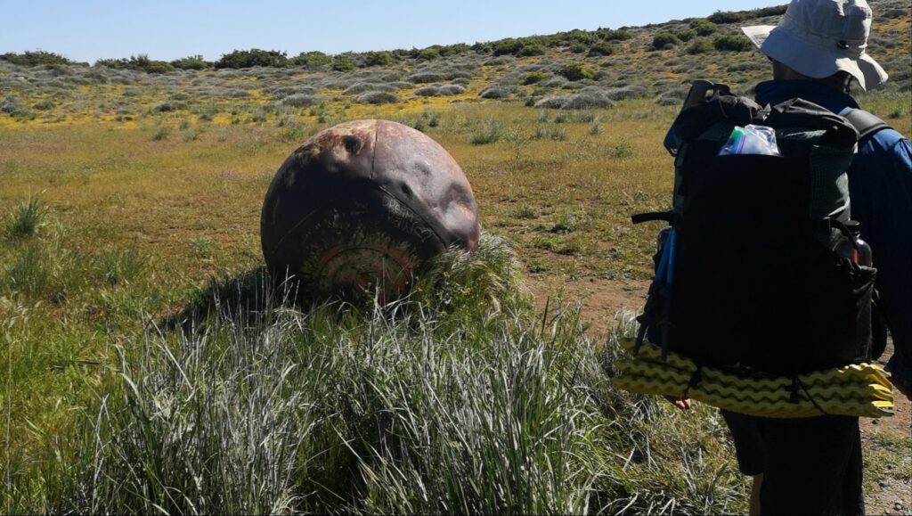 An einem Wanderparkplatz haben wir Wasser getankt. Leider haben wir die Hitze etwas unterschätzt, ich glaube wir müssen uns noch daran gewöhnen wieviel Wasser man bei Temperaturen um die 30°C und Mittagssonne so braucht. Am Abend haben wir uns dann von Hana einen Liter borgen müssen. Neben dem Wassertank lag eine alte, verrostete Abrissbirne – keine Ahnung was man damit mitten im Nirgendwo anfangen kann^^