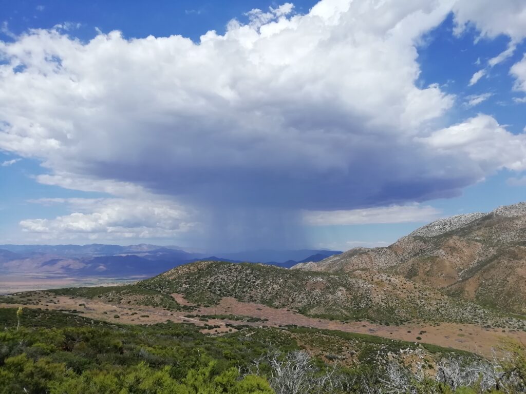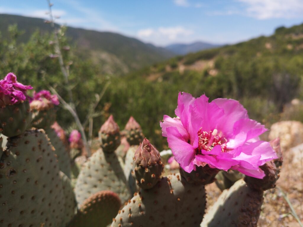 Später am Nachmittag konnten wir ein Gewitter beobachten, wie es sich geformt und dann über den Berg entladen hat. Ein sehr beeindruckendes Naturschauspiel, dass durch die ungemeine Weite der Täler nur noch an Faszination gewinnt. Die Natur ist unglaublich schön und wechselt jeden Tag ihr Gesicht. Heute haben mich auch die überall blühenden Kakteen vom Hocker gehauen. Knallrosa und grüne Blüten. Wunderschön.