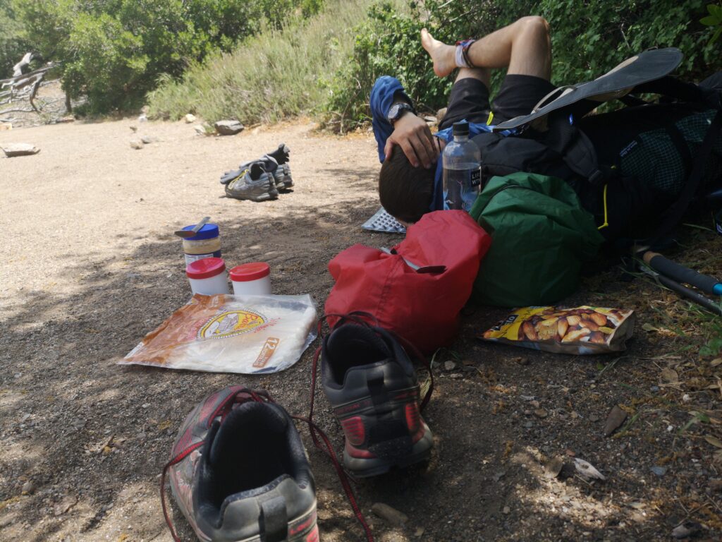 Wenig später trafen wir Thomas wieder, der inzwischen Tomato genannt wir. Er erzählte uns, dass er die Hitze gar nicht gut verträgt. Er sei fast ohnmächtig geworden, aber eine Wanderin habe ihm dann geholfen. Er will nun eine Abkürzung nach Julian nehmen und sich über Nacht im Hotel ausruhen. Wir haben ihm ein Bandana abgegeben, das wir nicht brauchen und hoffen ihm geht’s morgen wieder gut!