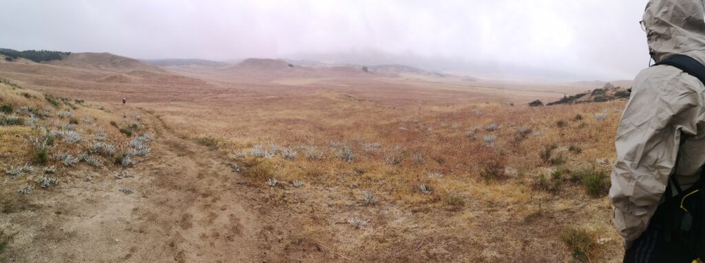 In der Früh haben wir unser Zelt zusammen gepackt und sind so wie die letzten Tage gegen kurz vor 7 aufgebrochen. Keine Minute zu früh, denn zehn Minuten später fing es an zu regnen.