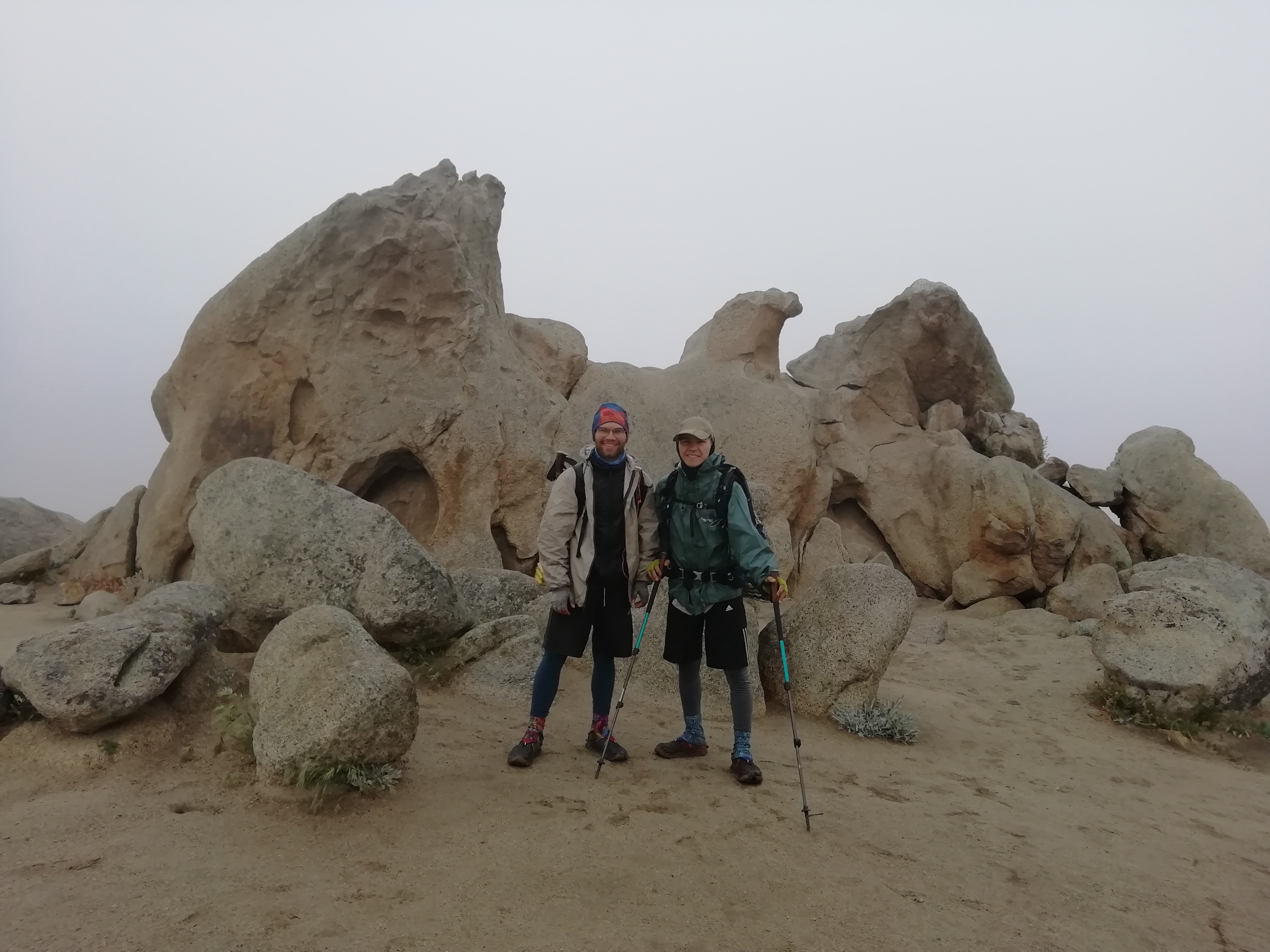 Nach 3 Meilen kamen wir am Eagle Rock vorbei, dem wir aber bei dem Wetter nur einen schnellen Foto-Stop schenkten. Das Foto von uns machte ein Wanderer, der rauchend, ohne Regenjacke (nur in Hemd, kurzer Hose und Cowboyhut, total durchnässt) dort Pause machte. Auf die Frage, warum er keine Regenjacke anhabe, meinte er ohne Regenjacke würde er schneller laufen… Hier laufen schon ein paar komische Leute rum.
