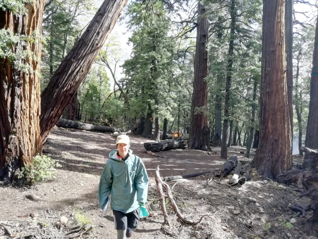 Wir sind ca. 8 Meilen gewandert. Es war teilweise sehr, sehr windig, aber wir haben eine relativ wettergeschützte Stelle zum Zelten gefunden. Bob hat in dieser Nacht sehr gut performt. Wir hatten auch dicke Steine auf jeden Hering gelegt, denn es war wirklich sehr windig und regnete. Zum Abendessen gab es Müsli mit Milch, das wir aus Idyllwild mitgebracht hatten und einen Instant-Kakao hinterher.