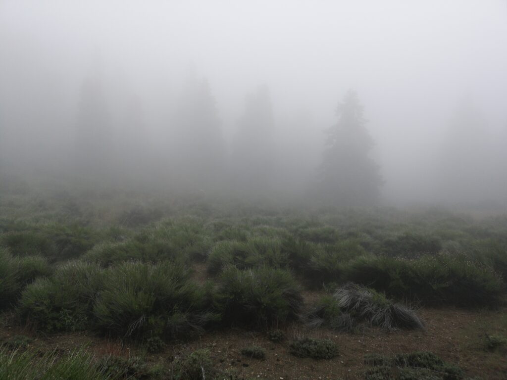 Irgendein Busch hat im Nebel angefangen stark nach frischer Minze zu riechen. Ich konnte aber nicht herausfinden welcher.