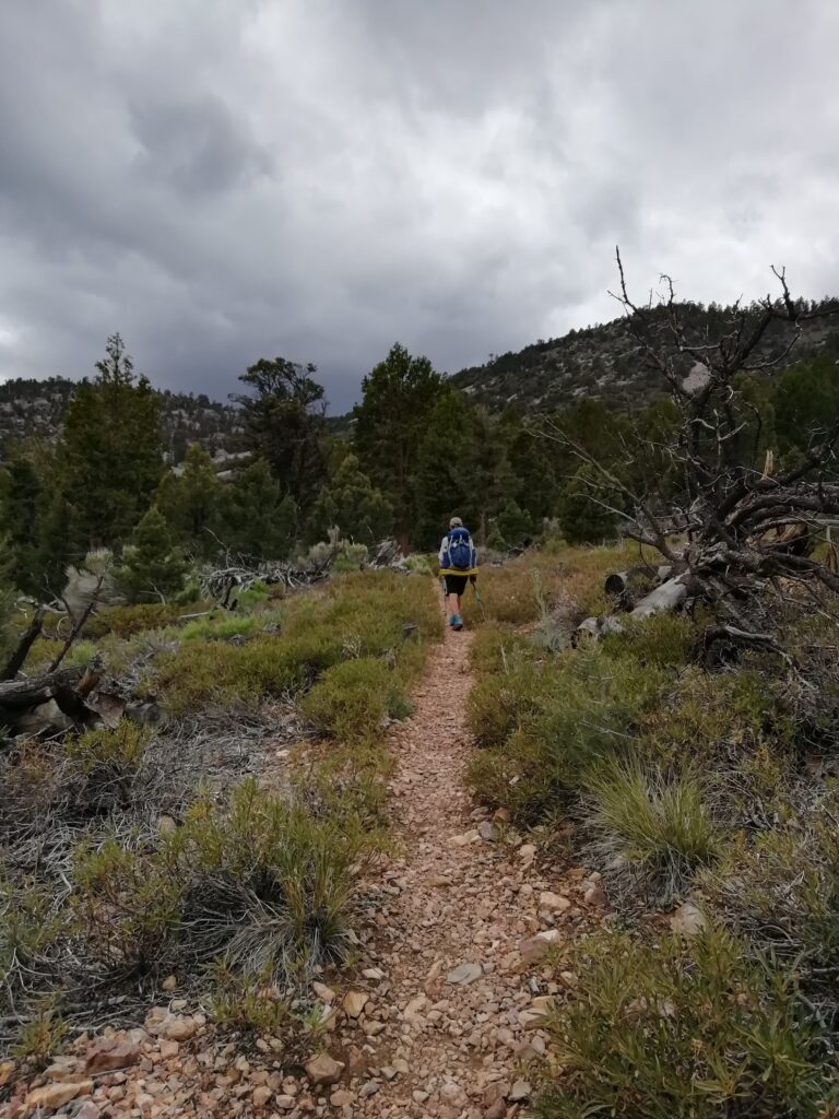 Ich machte einen Frühstücks-Stopp bei McDonalds und musste feststellen, dass es bis zwölf Uhr nur Frühstücksmenü gab. Also holte ich mir Pencakes anstelle von Burgern und überlegte mir eine Tagesplanung. Gegenüber war der Outfitter, bei dem ich noch eine Gaskartusche besorgen musste, er machte jedoch erst um zehn Uhr auf. Daher besorgte ich zuerst Essen im Vons Supermarkt drei Meilen die Straße runter. Nachdem ich es irgendwie geschafft hatte, Essen für sechs Tage für zwei Personen in und an meinem Rucksack zu verstauen, versuchte ich wieder zurück zum Outdoor-Geschäft zu kommen. Mittlerweile war es zehn Uhr. Jedoch wollte ich die fünf Kilometer nicht schon wieder gehen, weshalb ich mit rausgestrecktem Daumen los lief. Nach ein paar hundert Metern hielt ein weißer SUV auf der fünfspurigen Hauptstraße und ich sprang zu zwei Frauen mit einem kleinen Hund ins Auto. Sie wollten mich erst nur bis zum Outfitter mitnehmen, wir hatten aber so viel Spaß zusammen, dass sie warteten und mich auch noch die 12 Meilen zum Trail brachten. Die ältere der beiden war Mitte vierzig und gab mir den Tip, bei unserer nächstem Schlangensichtung diese gleich um die Ecke zu bringen und als Abendessen zu grillen. Es würde wie Hähnchen schmecken. Sie überlegte auch, als Trailangel anzufangen, ihr würden die Unterhaltungen so viel Spaß machen. Und ich riet ihr dazu, einfach ihre Handynummer am Trail zu hinterlassen. Das ist hier gängige Praxis, damit man die Chance hat Trailangel anzurufen falls einen beim Trampen keiner aufsammelt oder man es sich nicht traut.