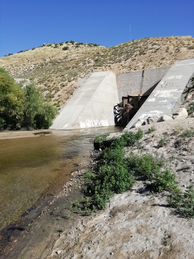 Dem Ausgang des Tals schloss sich eine kleine Staumauer an, der dahinter liegende See war allerdings praktisch inexistent. Wir ließen uns im Überlauf nieder. Das Echo war abgefahren. Ich habe ehrlich gesagt noch nie so ein beeindruckendes Echo erlebt, es kam bestimmt zwölf Mal zurück. Da wir in dem Überlauf ausnahmsweise Internetempfang hatten kümmerten wir uns um unser Smartphone-Problem. An dieser Stelle wollen wir uns bei Heike und Jim für die schnelle Hilfe bedanken!