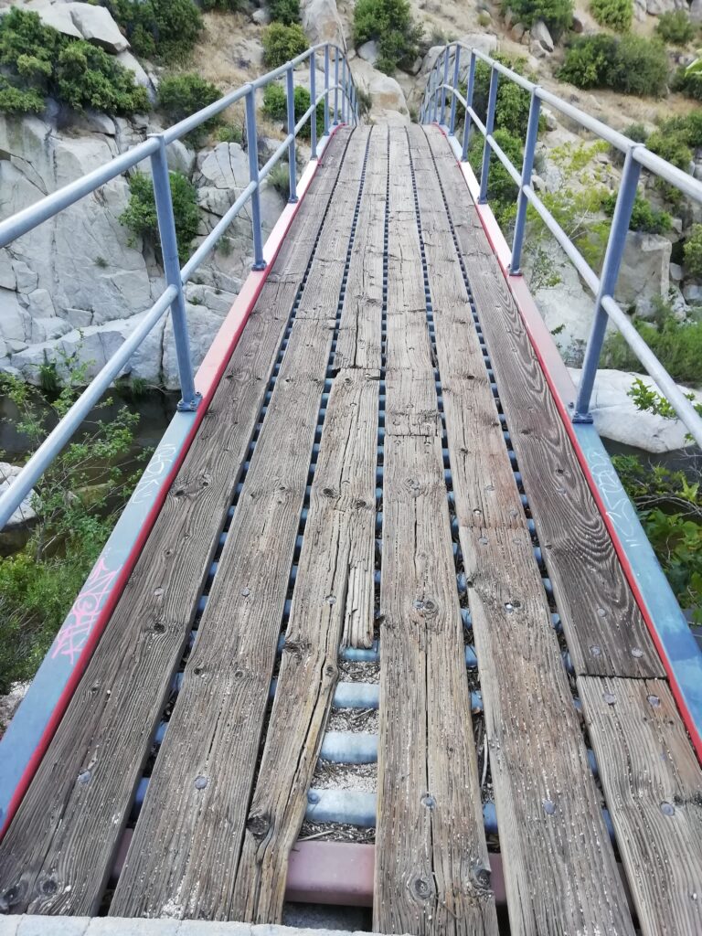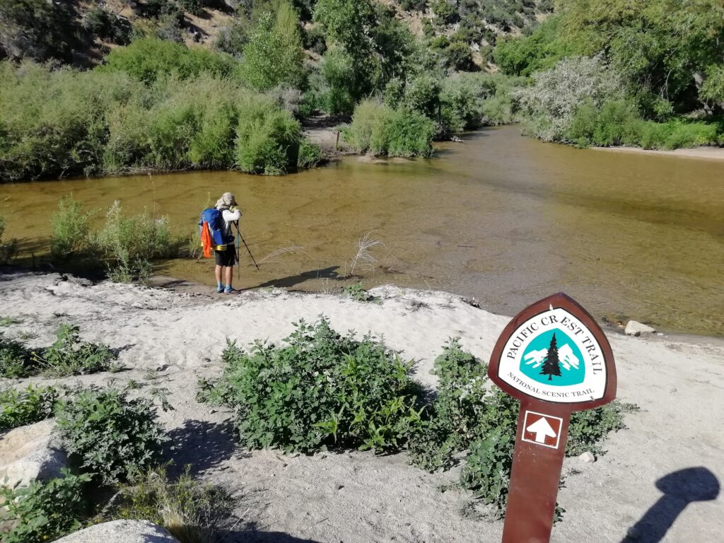 Als wir morgens um halb sechs an unserem Privatstrand vom Summen des Weckers geweckt wurden, wurde nonverbal brummend bis stöhnend beschlossen noch zehn Minuten zu dösen. Nach einem „Frühstück im Bett“ gingen wir gegen sieben Uhr los. Der PCT verlief nun auf der anderen Seite des Tales, also überquerten wir überquerten die Brücke neben der wir genächtigt hatten. Die Strecke wird anscheinend, trotz sehr vieler Verbotsschilder, gerne von Motocross-Fahrern genutzt, ich kann es ihnen nicht verdenken. Auf dem Weg aus dem Tal konnten wir überall Grafitti bewundern, wobei es sich meist nur um Tags handelte. Ein Schild wies uns darauf hin, dass wir doch bitte Menschen aus unserer Community bei der zuständigen nationalen Stelle für Vandalismus verpfeifen sollen – bis 1000$ Belohnung und Anonymität garantiert.