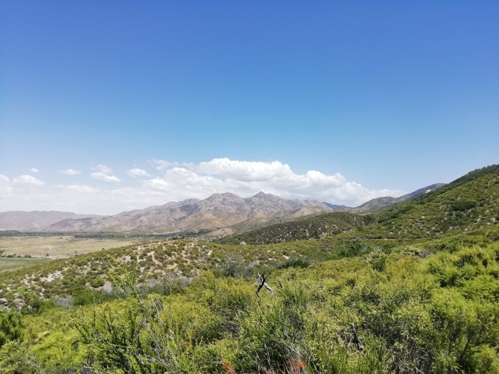 Dann liefen wir ein breites, für uns schattenloses Tal entlang und bewunderten die Kante auf der anderen Seite. Dort erstreckte sich eine ebene Fläche. Sehr merkwürdig. Die Kante heißt Oak Hills.