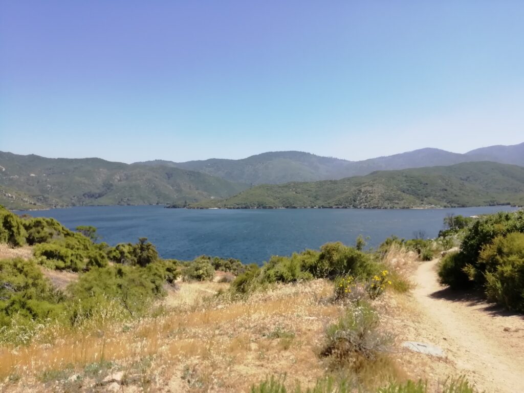 Nun liefen wir am Ufer eines großen Stausees entlang. Die Gegend sah aus wie von der Mittelmeerküste geklaut. Auf dem See fuhren Jetskis und andere Motorboote und das Wasser war tiefblau.