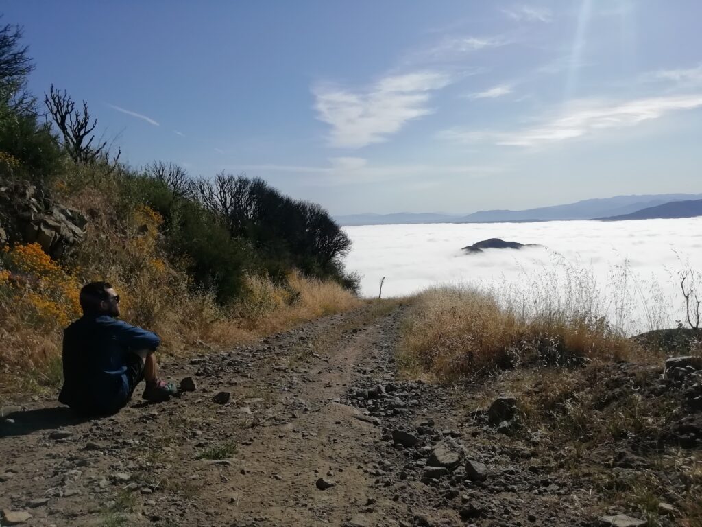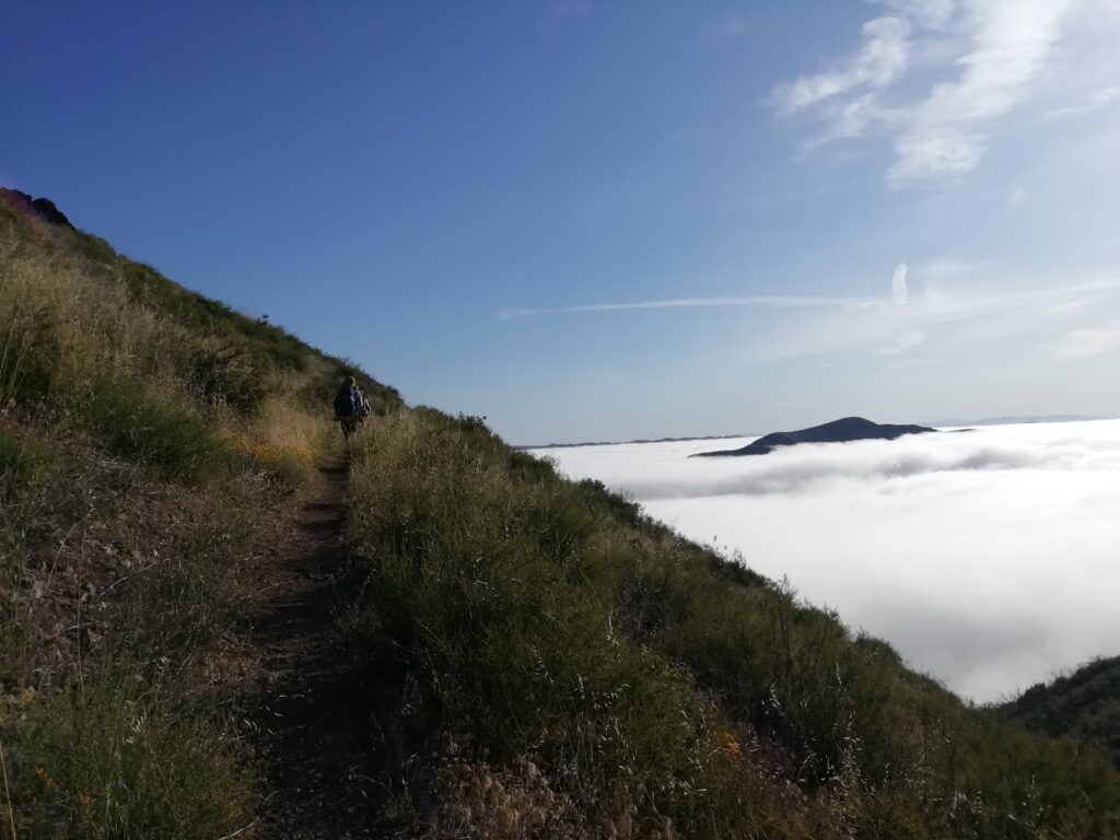 Nach etwa einer Stunde kamen wir aus der Wolke. Der Ausblick war grandios. Man hatte Ausblick über ein wolkengeflutetes Tal.