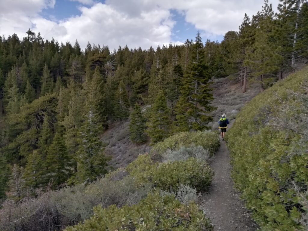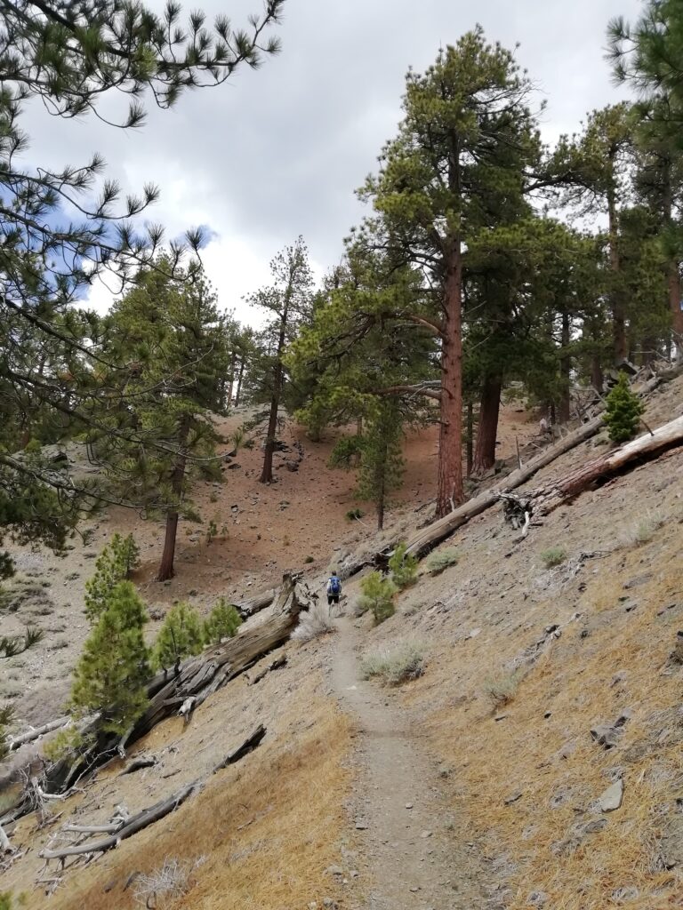 Am Nachmittag stellte sich heraus, dass wir zum Glück nicht auf den Schnee-Gipfel steigen müssen. Wir trafen einen Wanderer, der ganz verzweifelt seine Hunde gerufen hat, die einem Squirrel hinterher gerannt waren. Etwas weiter nutzten wir das Plumpsklo eines Campgrounds des Forrest Services, kamen durch ein Skigebiet und überquerten die Grenze zum Los Angeles National Forest. Wir trafen zwei sehr schnelle Wanderer, an die wir uns bis zum Abzweig nach Wrightwood hielten.