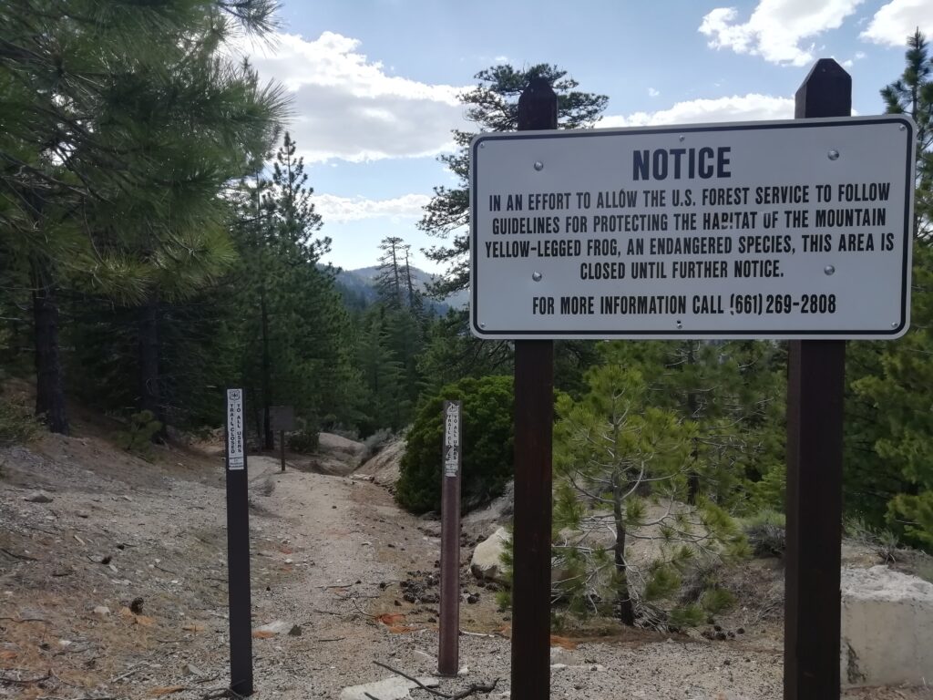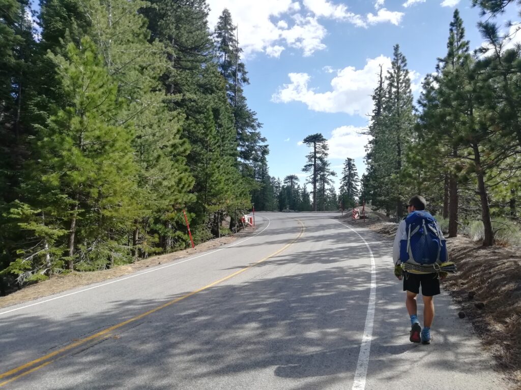 Zur Feier des Tages sind wir anschließend falsch abgebogen und insgesamt 40 Minuten den falschen Weg gelaufen. Wieder auf dem PCT wurden wir von einem steilen Hügel mit wunderbarer Aussicht belohnt. Als wir wenig später wieder am Highway waren, mussten wir den PCT verlassen und auf dem Highway laufen, weil der PCT an dieser Stelle durch ein Gebiet verläuft, in dem irgendwelche gelben Frösche geschützt werden sollen.