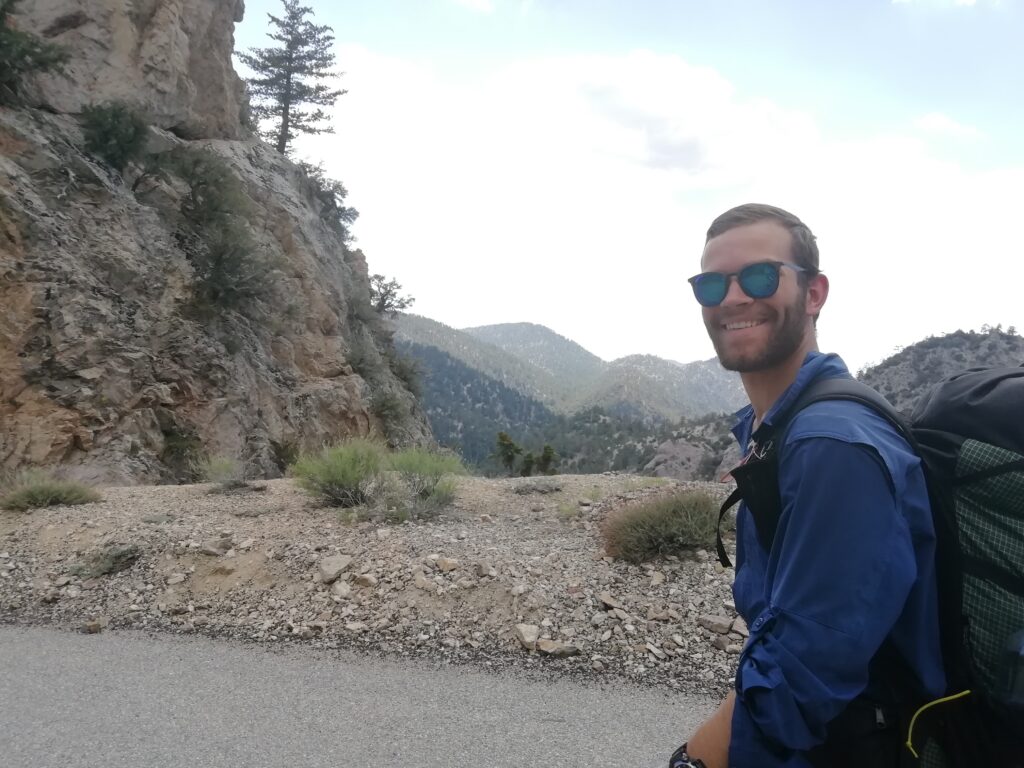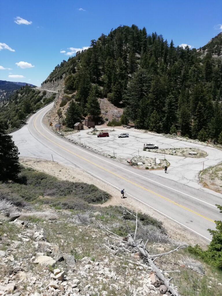Mittagspause machten wir auf einem Parkplatz des Gebirgshighways. Dort trafen wir „the Kid“, der für eine Einführungsveranstaltung seiner Uni für drei Tage nach Texas fliegen muss und auf einen Bekannten wartete, der in ca. eine halbe Stunde später mit einem riesigen Mercedes-Sprinter-Wohnmobil einsammelte. Einige Minuten später kam Ben. Unglaublich, er war um acht an dem Wanderparkplatz vom Vortag gestartet und hatte uns eingeholt.