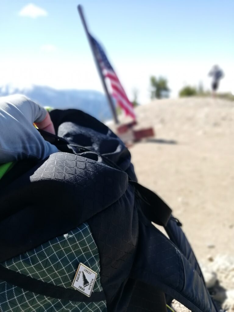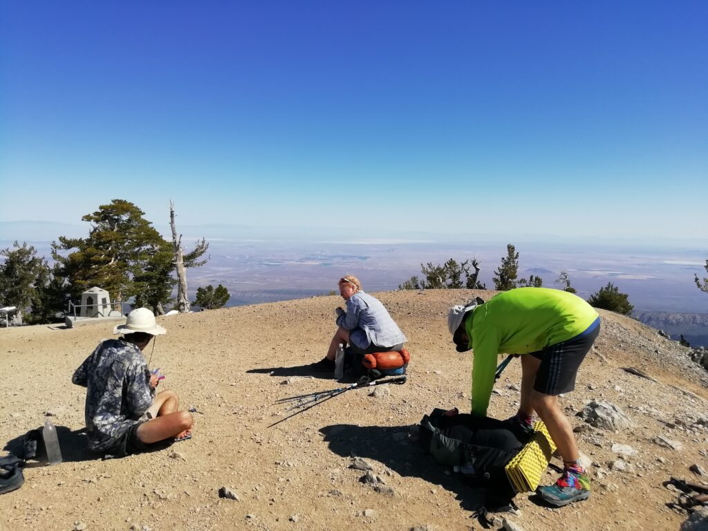 Wir machten ein kleines zweites Frühstück auf dem Gipfel und freundeten uns ein bisschen mit Oliver aus Seattle an, der auch den PCT läuft und in unserem Alter ist. Und quatschen mit einer anderen amerikanischen Thruhikerin, die wir immer mal wieder treffen, von der ich mir aber den Namen nicht merken kann.
