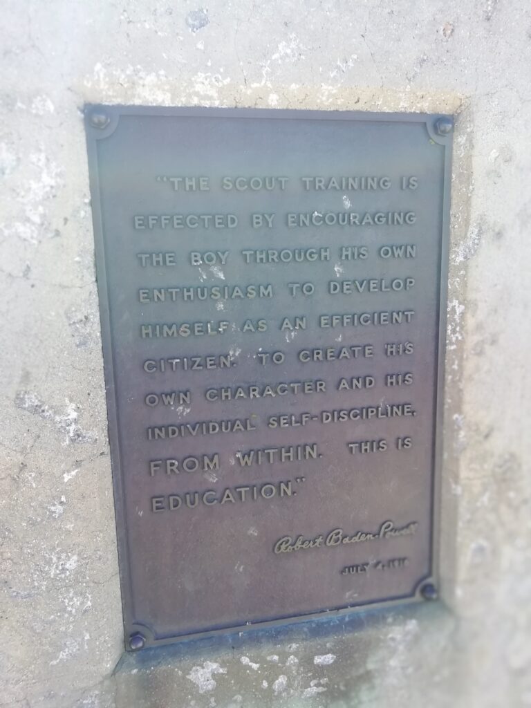 Als wir gegen viertel vor neun oben ankamen begrüßte uns ein sagenhafter Ausblick, ein Monument, auf dem erklärt wurde, wer Mr. Baden-Powell, Gründer der US-Pfadfinder, war, und eine USA Flagge.