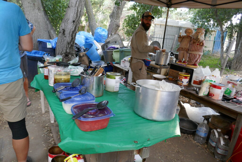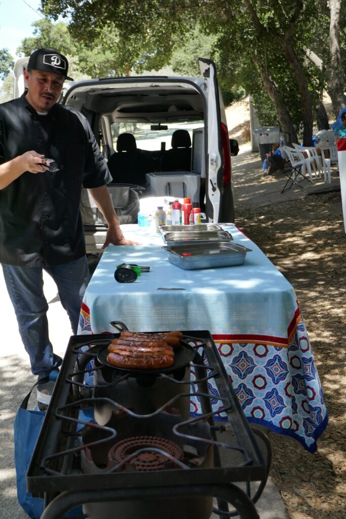 Nach einiger Zeit kam Rick vorbei, er hatte vorher mit Robert und Early Bird, einer anderen deutschen Wanderin, gequatscht und beschlossen für uns Bratwürste zu grillen. Er hat einen Foodtruck in LA und verkauft die Bratwürste wie geschnitten Brot. Nun wollte er die ehrliche Meinung von ein paar Deutschen einholen. Die Würste waren sehr lecker, es gab sogar deutsches Hela Curry Ketchup. Während er die Würste grillte erzählte er und kam vom Ästchen aufs Stöckchen. Es stellte sich heraus, dass Ricks Trailname Epic ist, weil er manchmal epische Fahrten in seinem Geländebuggy anbietet.