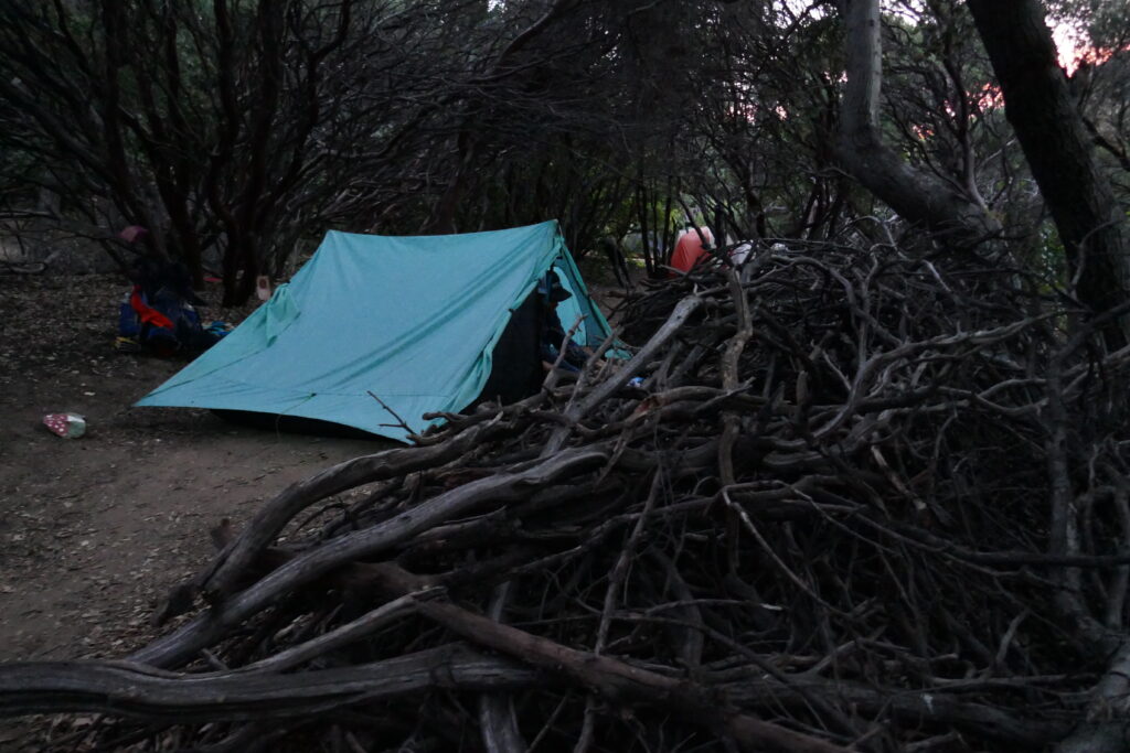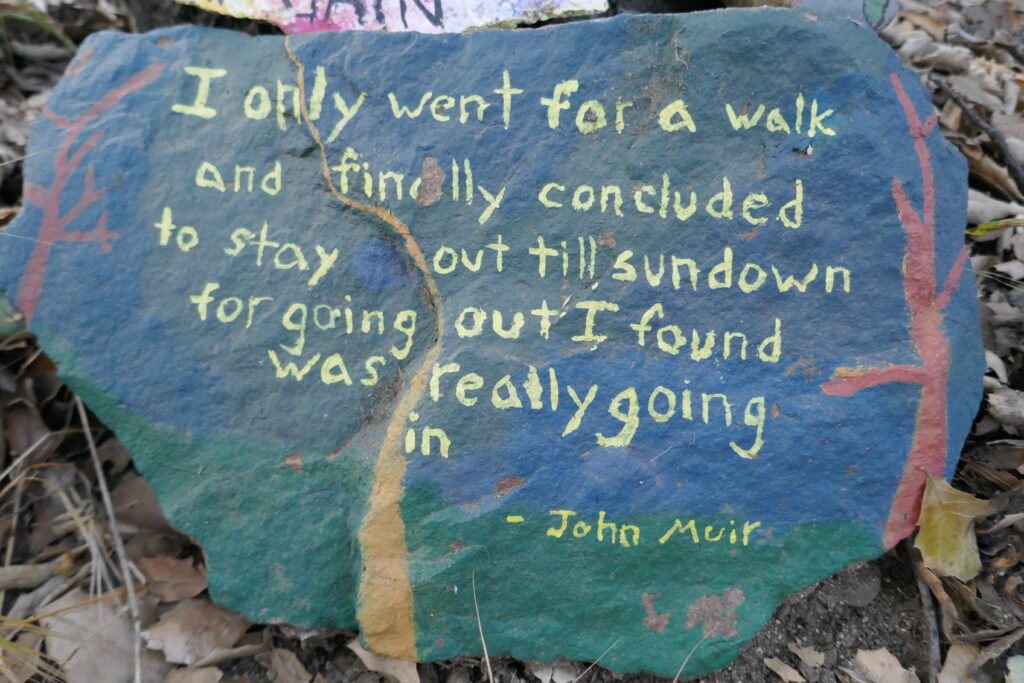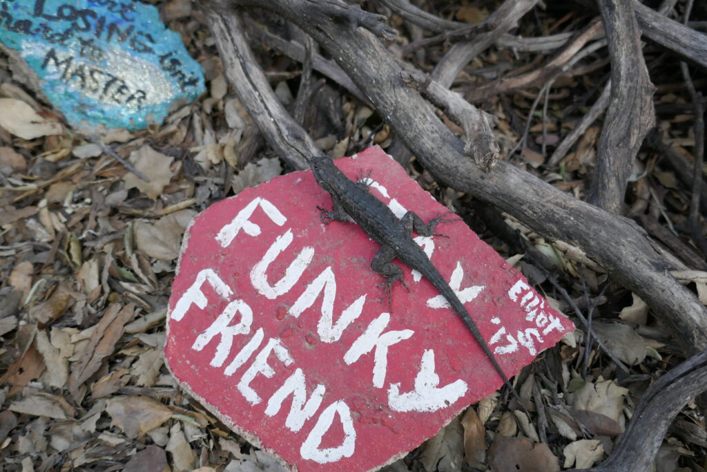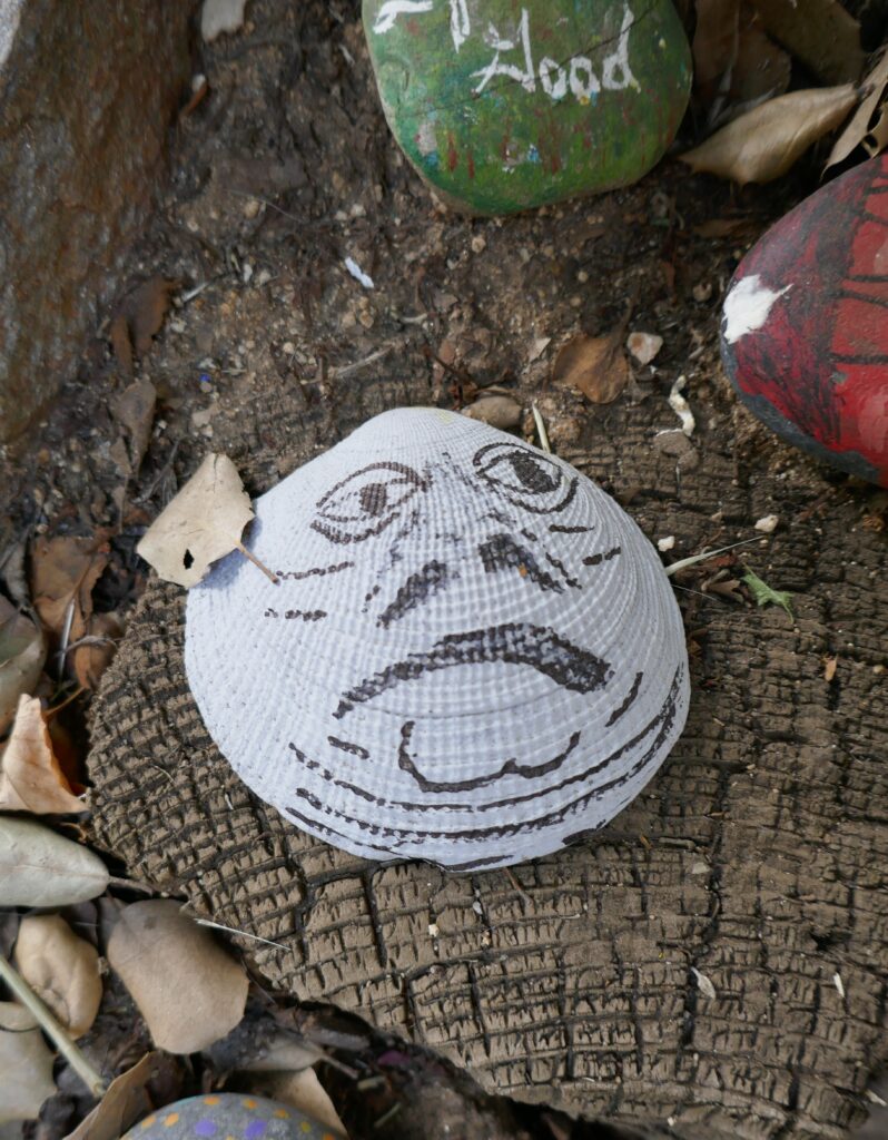 Anschließend haben wir einen Stein bemalt. Ich war sehr beeindruckt von Pauls künstlerischem Geschick, er hat den Großteil gemalt. Im Zeltwald liegen überall Steine herum, die zum Teil sehr kunstvoll bemalt wurden. Wir entschieden uns für ein Motiv aus der Heimat, vielleicht findet ihr es ja auf den Fotos 😉 Es war ein bisschen lustig die anderen Steine zu erforschen, weil man Schätze finden konnte, aber auch Steine von „berühmten“ Thruhikern, was vielleicht bedeutet, dass ich zu viele YouTube-Videos geschaut habe.