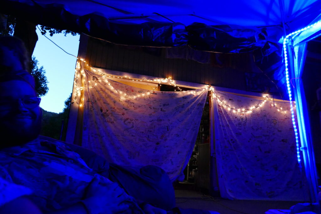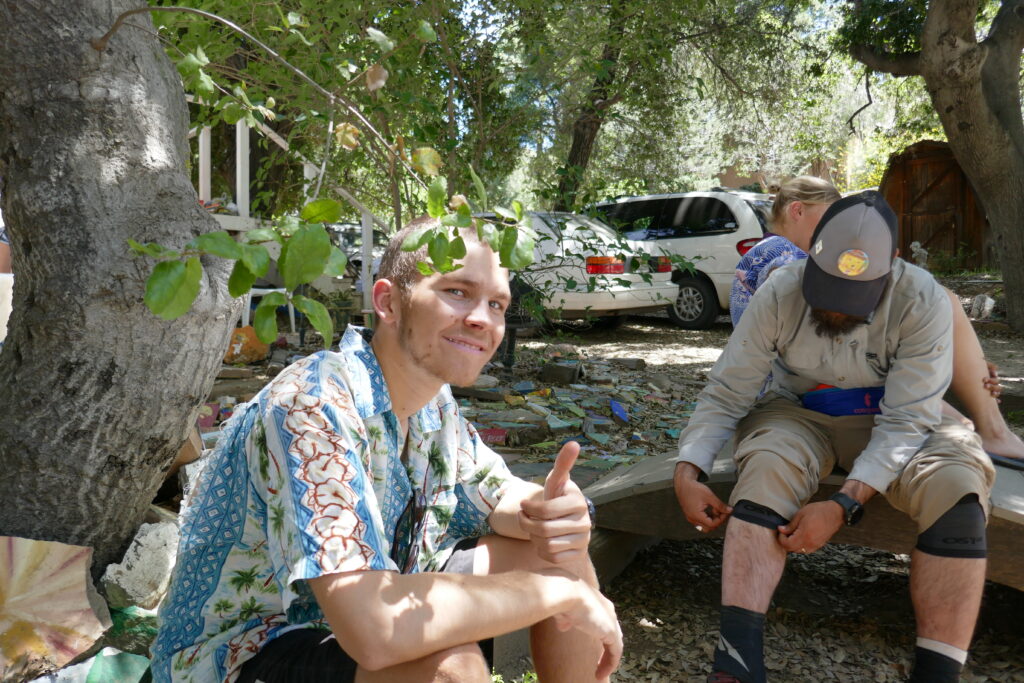 Gegen 10 Uhr waren wir in Casa de Luna. Das ist das Haus eines Ehepaares, die PCT-Wanderer hosten. Sie haben ein kleines Wäldchen hinterm Haus, in dem Bob Platz fand. Regel Nummer eins ist, Terry eine Umarmung zu geben wenn man kommt und wenn man geht. Regel Nummer zwei ist, sich ein Hawaii-Hemd anzuziehen.