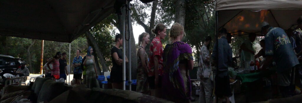 Zum Abendessen gab es, wie jeden Abend in Casa de Luna, Tacco Salat. Terry macht sich dabei einen Spaß daraus jedem, der seinen Teller über das Buffet hält, eins mit dem Stock auf den Hintern zu geben. Er war super lecker und so bin ich nach drei großen Portionen erschöpft von diesem Wahnsinnstag ins Zelt gerollt.