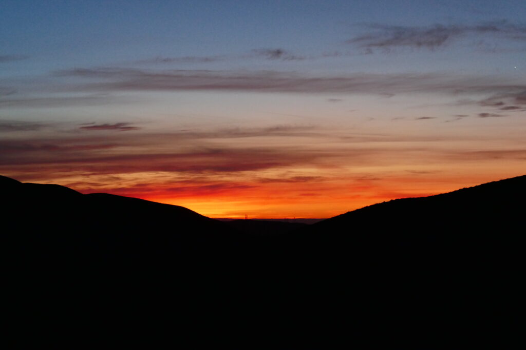 Um die kühlen Stunden des Tages auszunutzen brachen wir bereits um fünf Uhr auf. Die Meilen bis Casa de Luna verliefen relativ ereignislos. Es gab einige Höhenmeter und schöne Ausblicke, sowie einen tollen Sonnenaufgang. Die letzten 1,5 Stunden waren ein bisschen anstrengend, weil man schon ins Tal schauen konnte und wir es noch einmal umrundet haben bevor wir abstiegen.