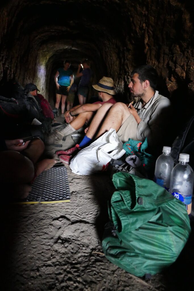 Nach einer halben Stunde kam Martin, kurz darauf Leon und später auch Esra. Die Bude füllte sich mit uns bereits bekannten und unbekannten Gesichtern. Zur Mittagszeit waren etwa 13 Hiker im Schacht, genossen den Schatten und dösten vor sich hin.