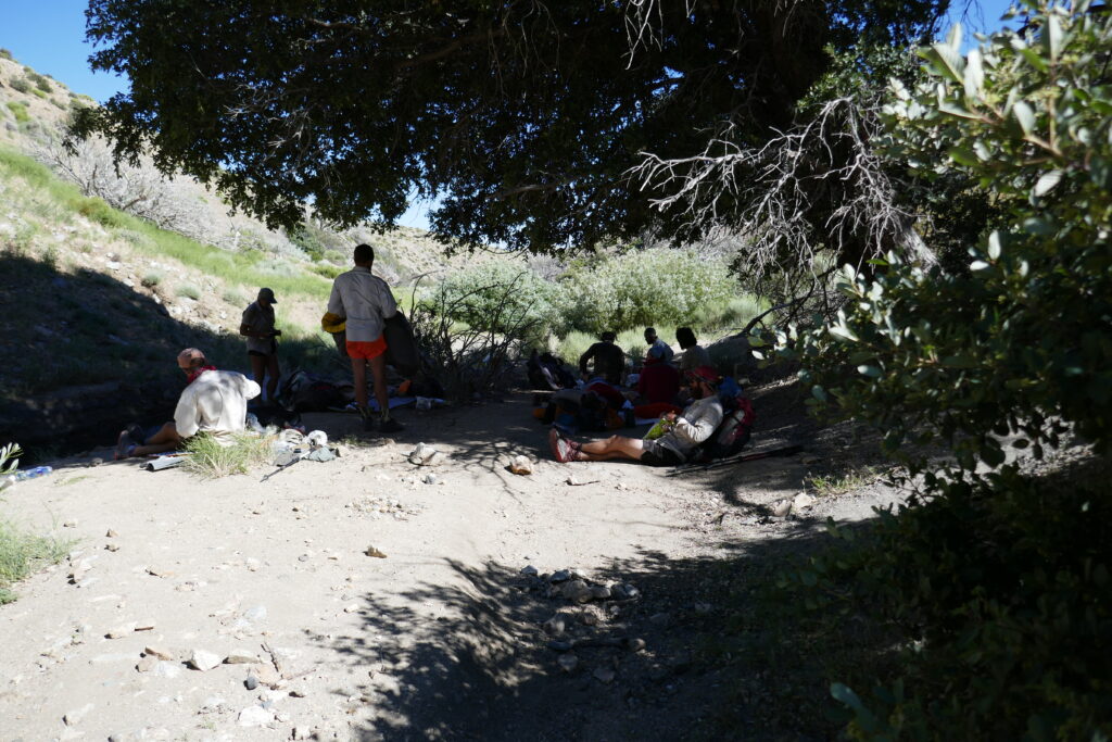 Gegen zehn Uhr erreichten wir das Ende der Ebene und fanden wenig später in einem kleinen Tal eine große Eiche, unter der wir mit einem Dutzend anderer Hiker den Mittag und Nachmittag verbrachten. Der in der vorigen Nacht versäumte Schlaf wurde nachgeholt und um Fünf Uhr brachen zu den letzen sieben Meilen des Tages auf.