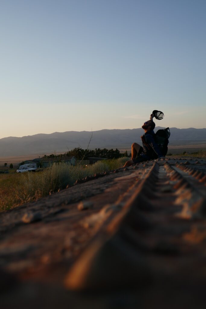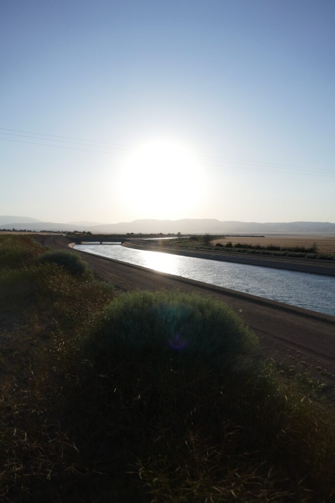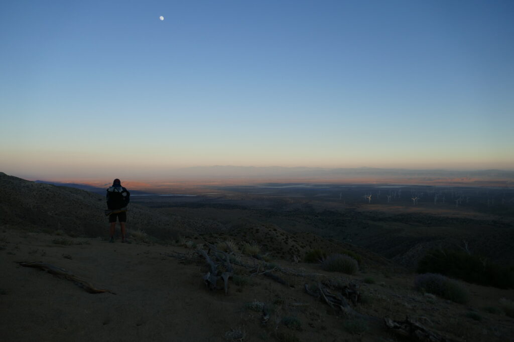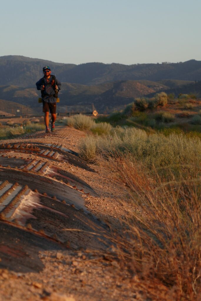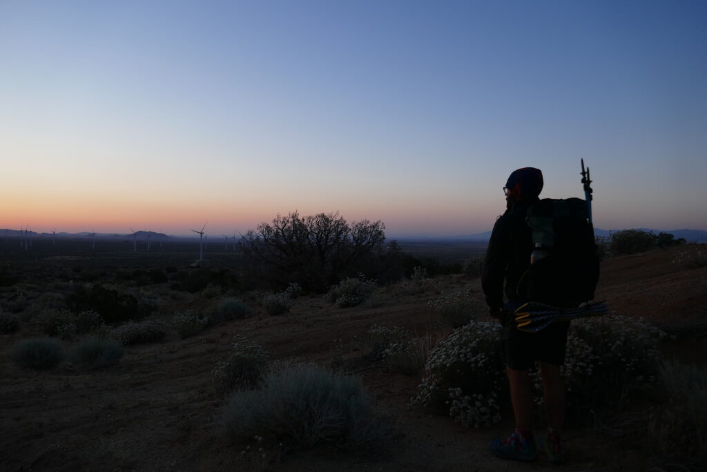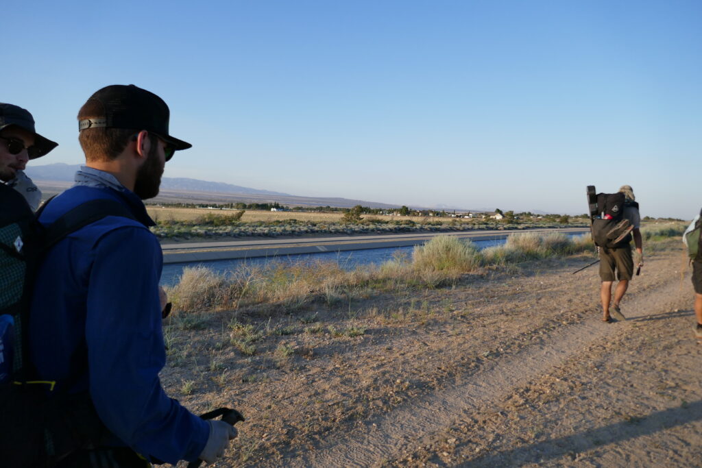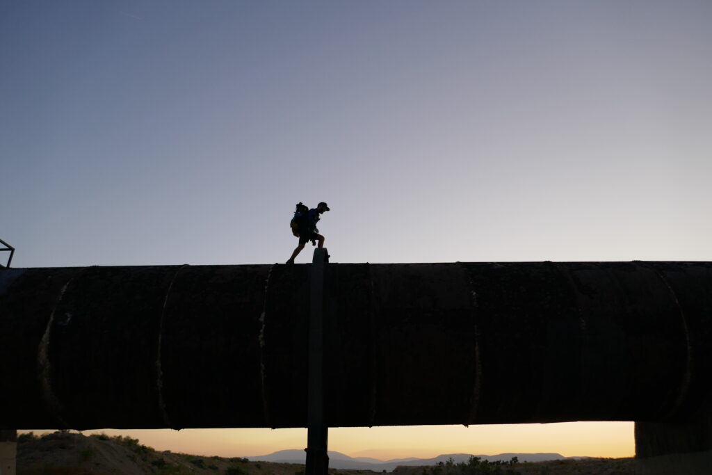 Nach einer Meile wurde aus dem Kanal eine riesige Pipeline, von der aus wir den Sonnenuntergang betrachteten. Wir haben uns für eine Nachtwanderung entschieden, da am Aquaeduct nur eine einzige Wasserquelle nach 18 Meilen ist und sich das bis dahin zu schleppende Wasser mit dem vermeiden direkter Sonne auf „nur“ vier Liter reduzierte.