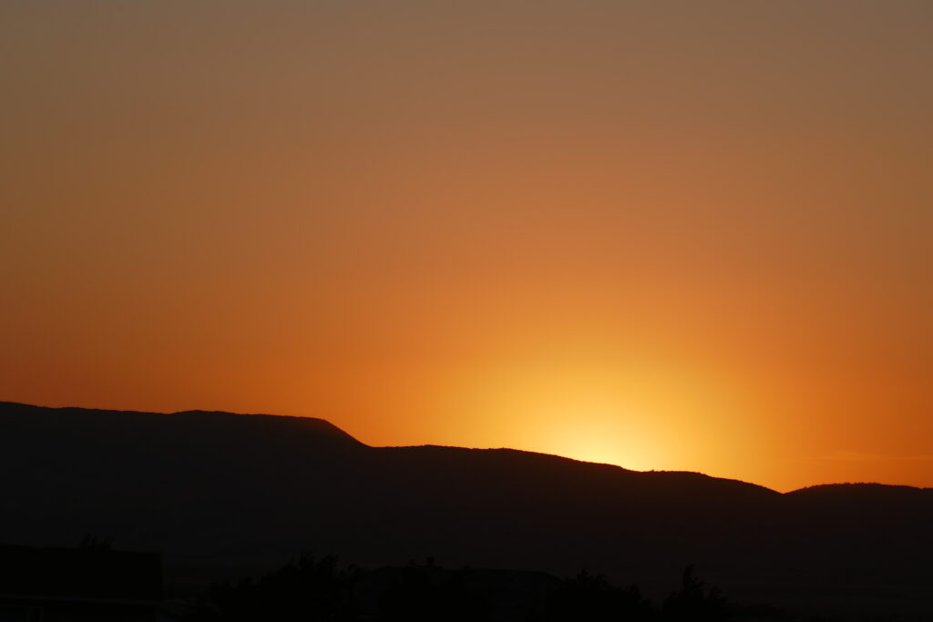 Nach einem viel zu kurzen Schlaf in einem laut im Wind flatternden Bob füllten wir am einzigen Wasserhahn des Aquaeducts, noch halb schlaftrunken, unser Wasser auf und Frühstückten. Da war es sechs Uhr und die Sonne kam langsam raus.
