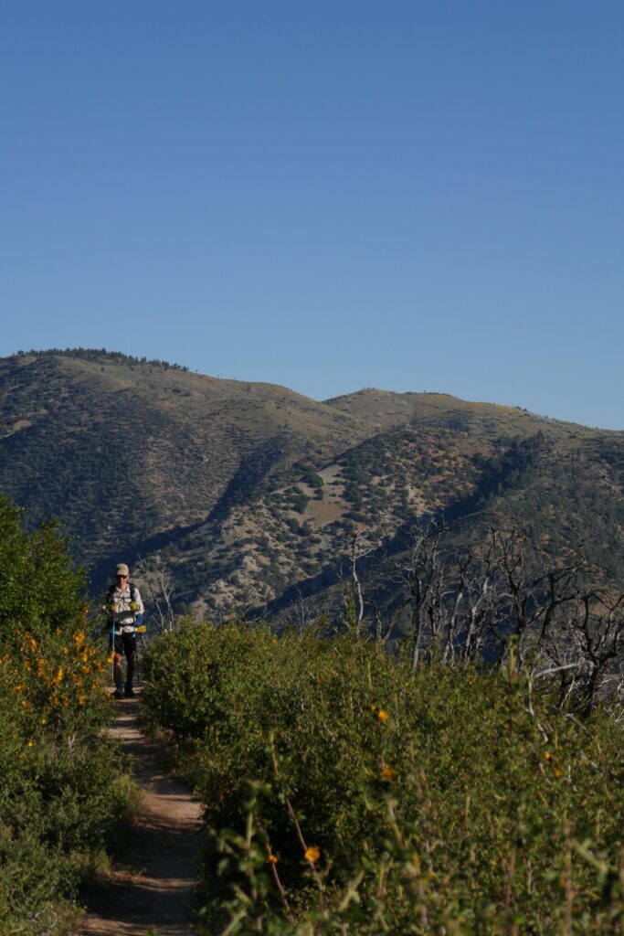 Meile 1207.3 – 1230.6 Heute war eigentlich ein langweiliger Tag. Wir liefen durch viel Wald, Blumen und Staub. Es war ziemlich heiß und wir sahen ein paar Wanderer, die keine PCTler waren. Mein Knöchel und Mittelfuß hat ziemlich weh getan, vielleicht sollten wir mal eine längere Pause machen. Das Highlight des Tages war der Sonnenuntergang….