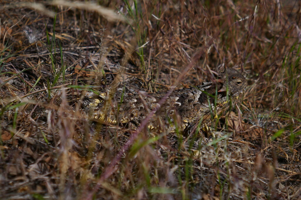 Gerade als wir einen Wald betraten und die Luft damit angenehmer wurde, ging es wieder bergab. Im nächsten Bergsattel ließen wir unsere Schlafsäcke trocknen und machten dösend Mittagspause.