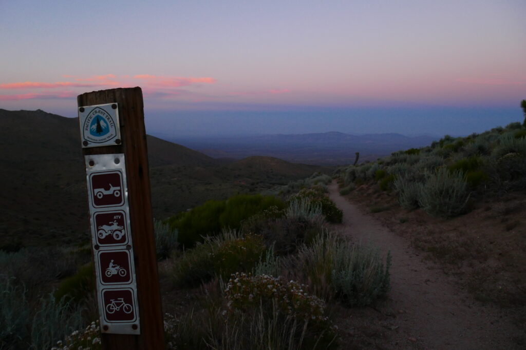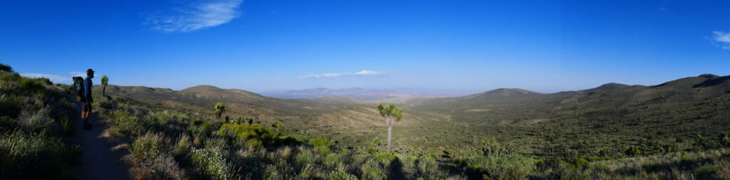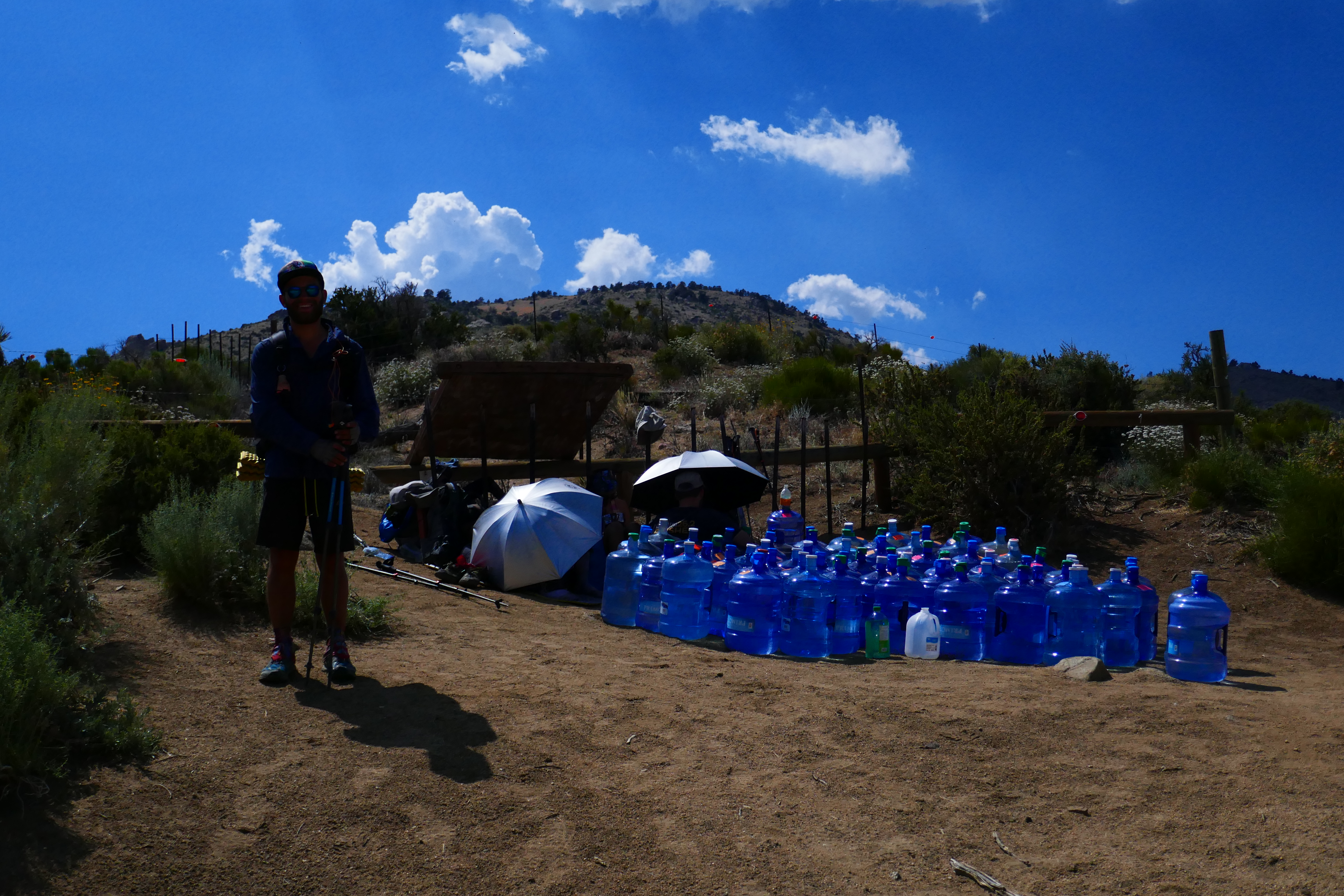 Wir wachten mit diesmal trockenen Schlafsäcken auf. Es folgte ein sehr angenehmer, leicht abschüssiger Weg durch einen Wald, wo wir nach drei Meilen an einen Wassertrog mit frischem Quellwasser stießen. Unser nächster Abschnitt hatte nur wenige verlässliche Wasserstellen. Und diese waren selbst nur Wasservorräte mit Wasserkanistern, die von Freiwilligen gespendet und dort hin gebracht wurden. Dadurch wusste man nicht, wie viel Wasser bei der eigenen Ankunft noch übrig sein würde.