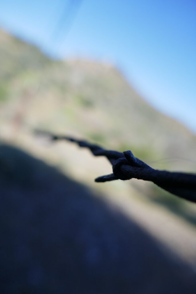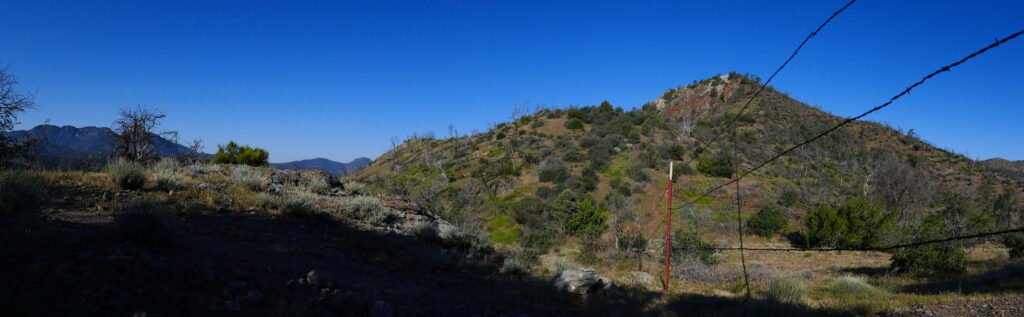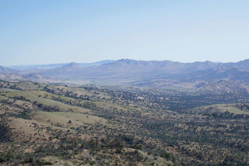 Die folgenden Meilen gingen bei zunehmender Hitze teils mehr bergauf als uns lieb war und wir so schnauften wir schwitzend unter mehreren kleinen Pausen an einem alten, abgeknickten Funkmasten vorbei ein großes Tal entlang.
