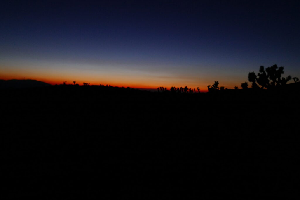 In der Dämmerung gab es beeindruckende Ausblicke und als ich meine Stirnlampe einschalten wollte merkte ich, dass sie nicjt mehr auf meinem Kopf saß. Nach einem kurzen Herzkasper ging ich mit Handylicht den Trail zurück und fand sie nach etwa einer halben Meile im Sand liegen. Erleichtert genoss ich den grandiosen Sternenhimmel. An unserem Zeul angekommen campten wir einmal mehr ohne Bob, nur unter dem Sternenzelt.