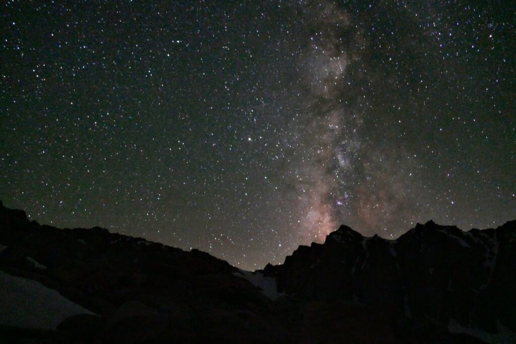 Nach guten zwei Stunden machten wir eine Viertel Stunde Verschnaufpause. Paul hat inzwischen ein wenig herumexperimentiert wie man schöne Sternenfotos mit unserer Kamera machen kann und so entstanden ein paar unglaubliche Bilder, die in etwa die Wirklichkeit abbilden. Ich möchte betonen, dass das einfach nur eine Langzeitbelichtung ist, wir haben nichts nachbearbeitet. Leider war es ein wenig zu windig, weshalb die Bilder ein bisschen angewackelt sind.