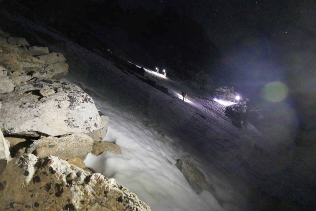Immer wieder sahen wir Stirnlampen weit über uns im Berg aufleuchten, wir waren also nicht die ersten.