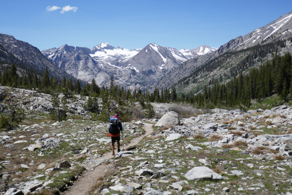 Weiter ging es entspannt bergab. Wir mussten ein paar Flüsse queren, aber nichts dramatisches. Wir trafen ein paar Leute wieder, die wir länger nicht gesehen hatten. Das lag daran, dass man über einen Abstecher nach Independence gelangen konnte. Wir waren also einen Tag schneller, als viele anderen.