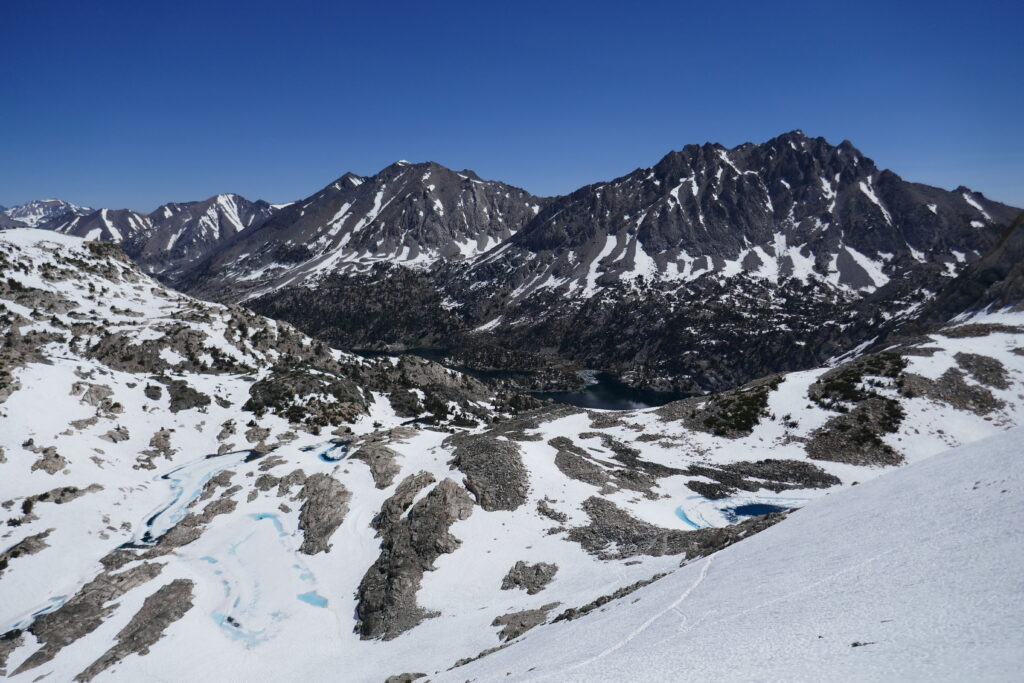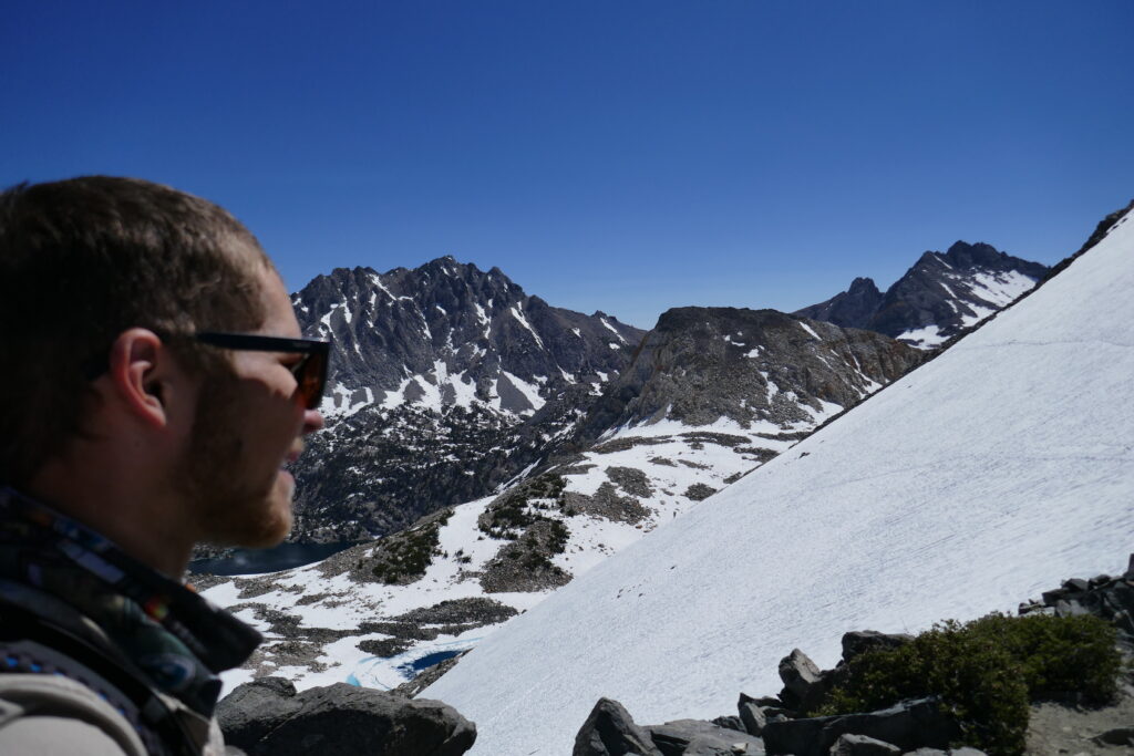 Der Aufstieg war sehr einfach und ungefährlich, oben angekommen erwartete uns ein schöner Blick. Manche Wanderer sagen, der Glen Pass biete den schönsten Ausblick des PCT. Das ist nicht weit hergeholt. Man blickt auf ein Tal voller Seen, die hell- bis dunkelblau in der Sonne glitzern.