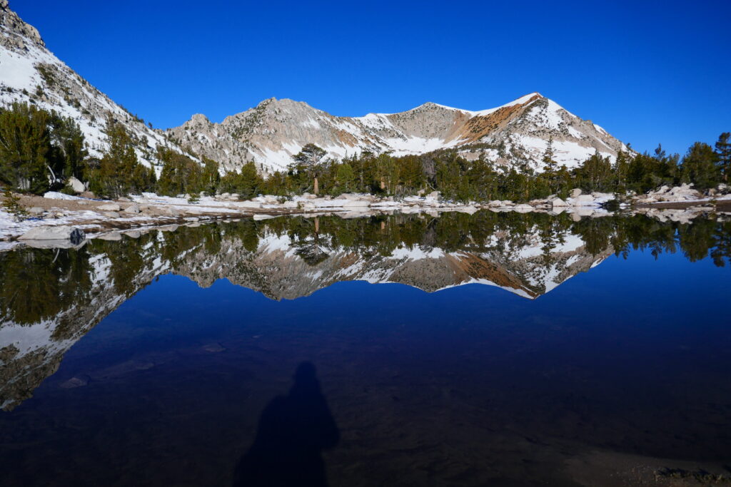 Dann machten wir Frühstück am Spiegelsee. So heißt der See nicht wirklich, aber er war so extrem ruhig, dass er einfach ein großer Spiegel war. So etwas hat vorher in diesem Ausmaß noch keiner von uns gesehen. Nach dem Frühstück ging es mir besser und wir machten uns an den Aufstieg zum Glen Pass.