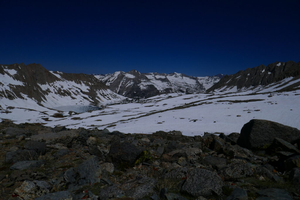 Später trafen wir Greybeard, Redbeard und Bronko wieder. Wir gingen ein Stück zusammen und schlugen knapp unterhalb der Schneegrenze unser Zelt auf. Wir kochten, aßen und gingen zu Bett. Es sollte eine kurze Nacht werden. Wir hatten die Nase voll von den kleinen Tagen und beschlossen mal wieder was beeindruckendes zu machen. Mal gucken, ob das klappt, es wird auf jeden Fall eine kurze Nacht.