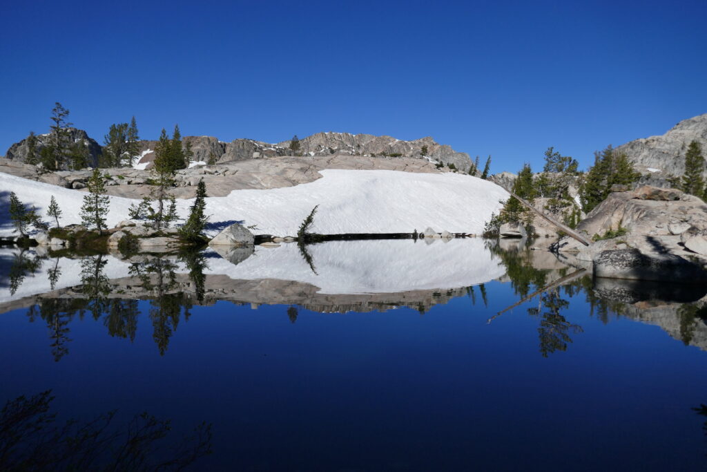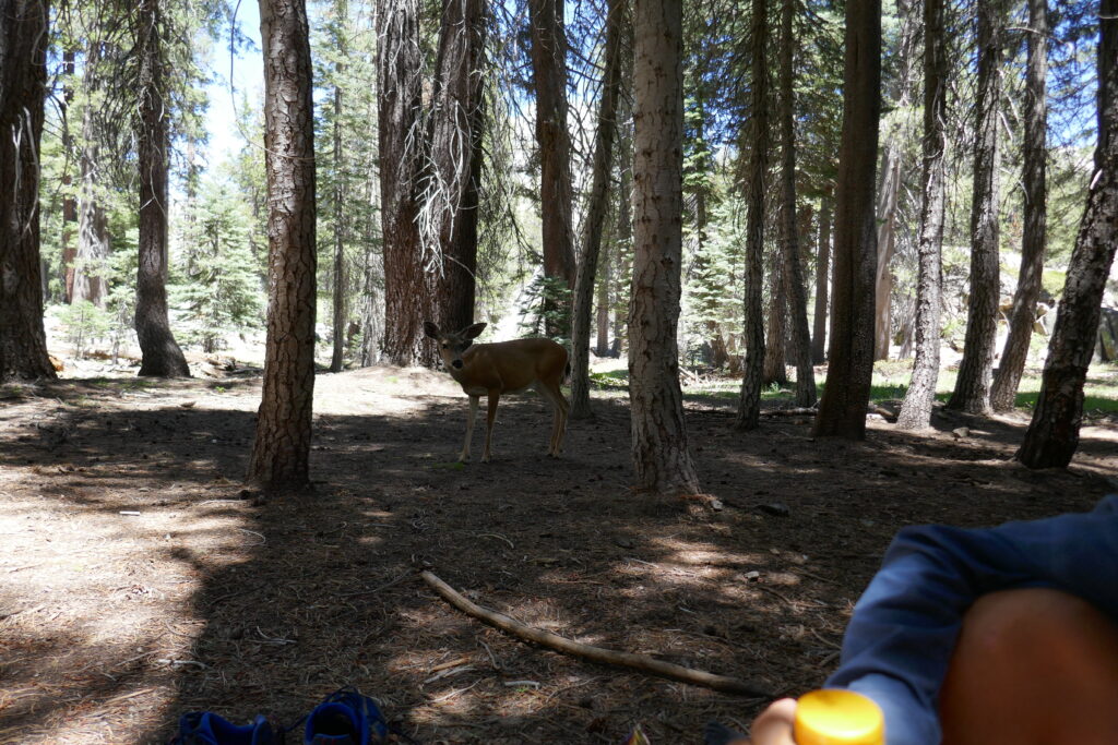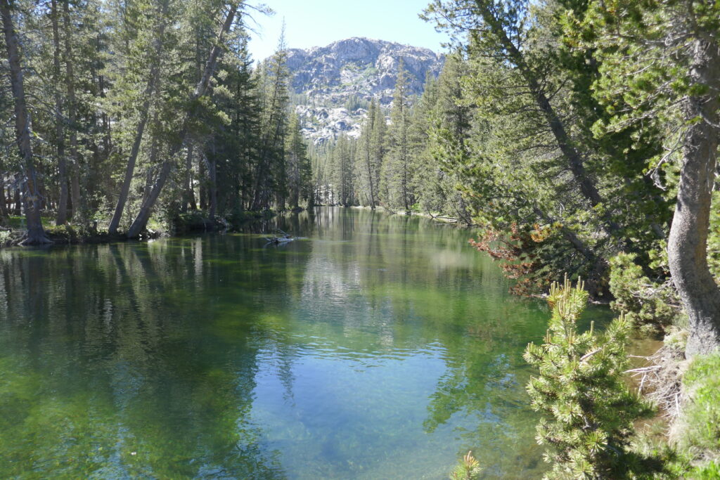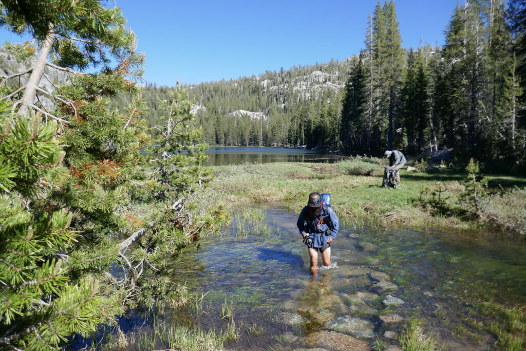 Die nächsten Meilen bis zu unserem Schlafplatz liefen entlang dieses Flusses und durchquerten noch einige Seitenarme und Zuflüsse. Heute waren unsere Füße den überwiegenden Teil der Zeit nass gewesen, wie an vielen Tagen in der Sierra. Das ist im Prinzip nichtmal störend. Das Wasser erwärmt sich sehr schnell im Schuh und danach bemerkt man es fast nicht mehr. Solange man noch ein zweites Paar trockener Socken hat ist alles im grünen Bereich. Falls nicht hat man am nächsten Morgen einen schlechten Start in den Tag, da es nicht angenehm ist, eiskalte, nasse Socken anzuziehen.