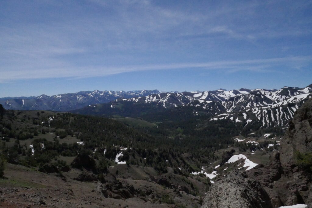 Anschließend begannen wir auf dem falschen Trail und mussten ein wenig durch die Büsche, um zurück auf den PCT zu kommen. Oben auf dem Pass erwartete uns ein schöner Ausblick über ein weites Tal. Wir machten erstmal Mittagspause und stellten fest, das durch die dünnen Schleierwolken ein kreisrunder Regenbogen um die Sonne lag. Ein beeindruckendes Naturschauspiel. Nachdem wir kurz mit Shuffels gequatscht hatten ging es in dem Tal hinab. Durch Wald, mal leicht bergauf, dann wieder bergab. Kleinere Schneefelder machten es schwer auf dem Trail zu bleiben. Wir Cowboy-campten und der nächste Tag war nicht viel anders. Viel durch Wald und über angenehm zu laufenden Boden. Zwischendurch ein paar kleine Schneereste und Bäche. Am Späten Nachmittag erreichten wir eine kleine geteerte Passstraße, die nicht einmal einen Mittelstreifen besaß.