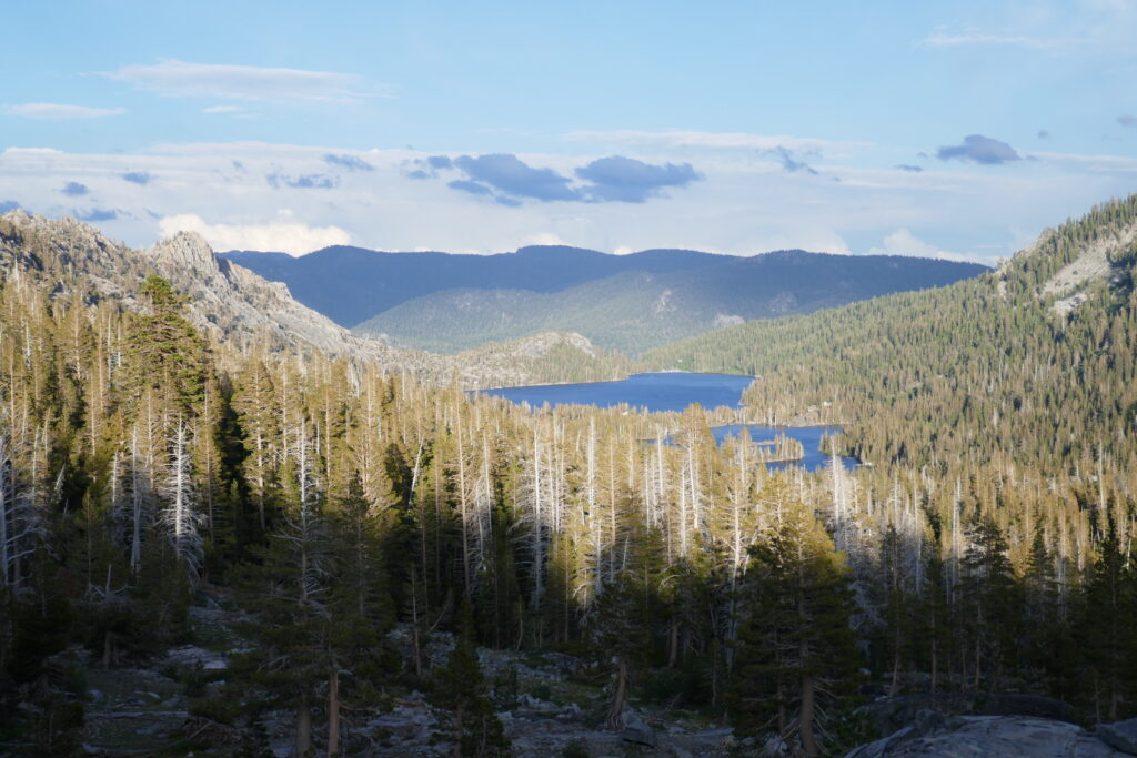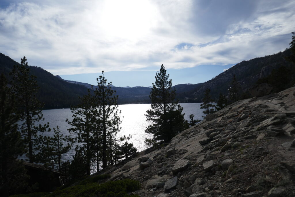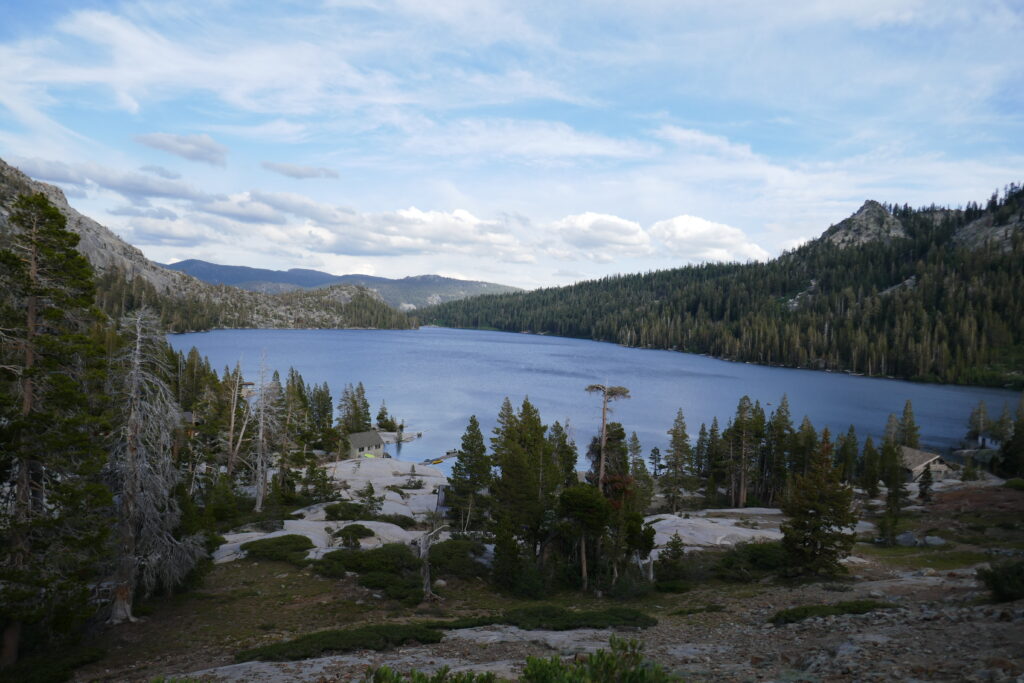 Zurück auf dem Trail liefen wir ein paar Meilen bis zum Echo Lake und genossen Subway Sandwiches zum Abendbrot. Dann liefen wir ca. vier Meilen und biwakierten auf einer Anhöhe mit Blick auf den See. Der Weg um den See war sehr schön. Man lief an Ferienhäusern vorbei, die nur vom Wasser aus erreichbar sind. Wir sind jetzt in Desolation Wilderness, was für sehr schöne Seen bekannt ist. Morgen werden wir die Wilderniss durchwandern. Ich bin mal gespannt, ob die Gerüchte stimmen.