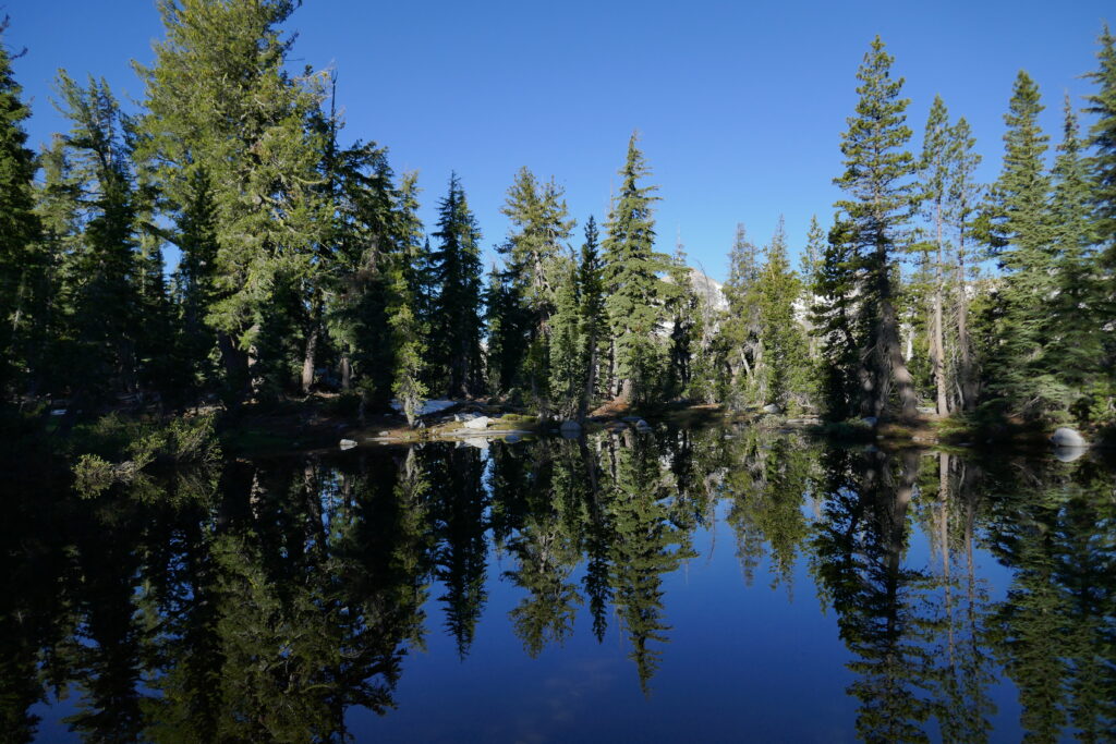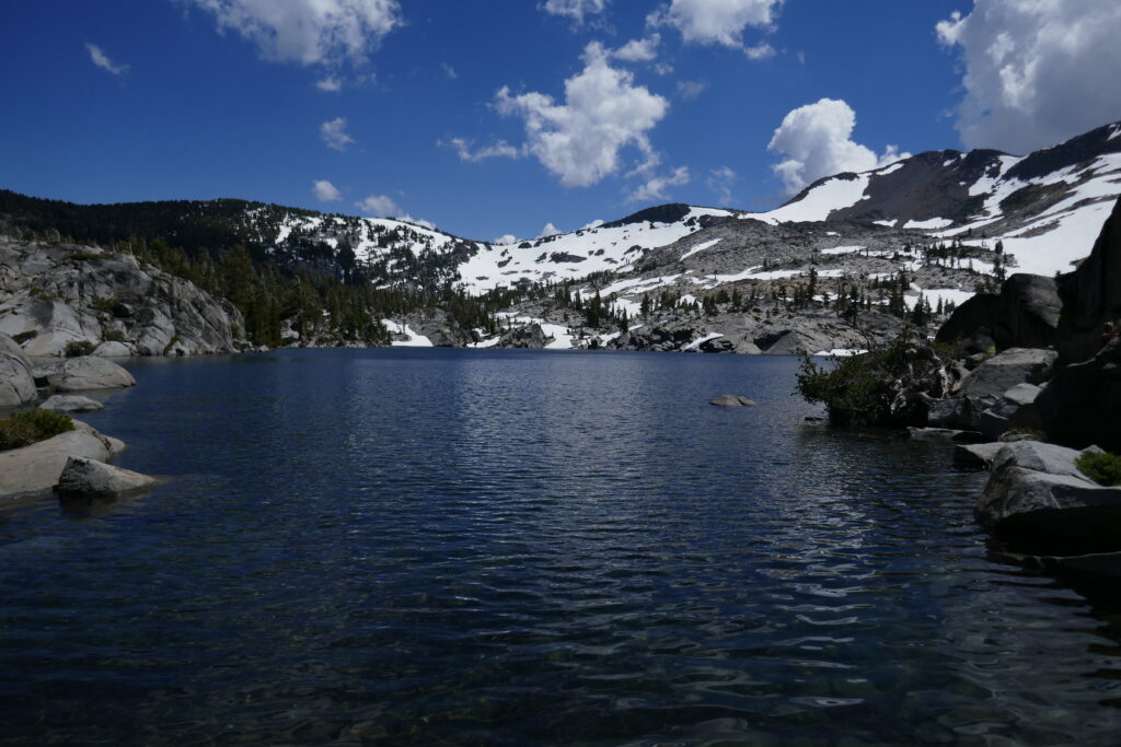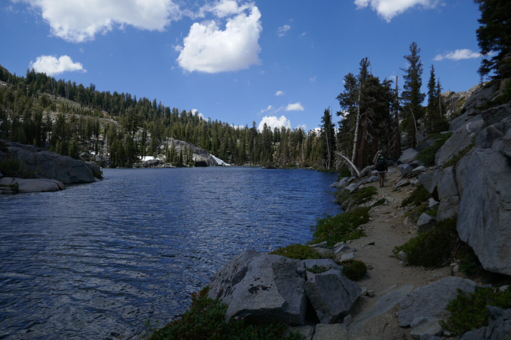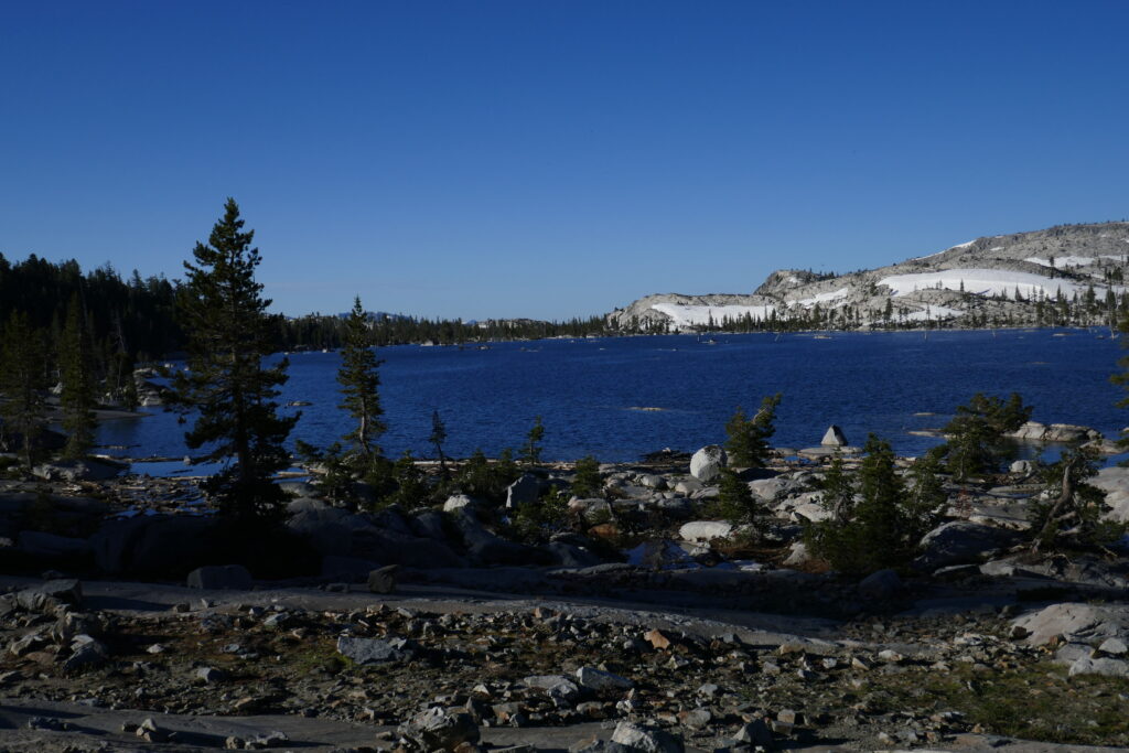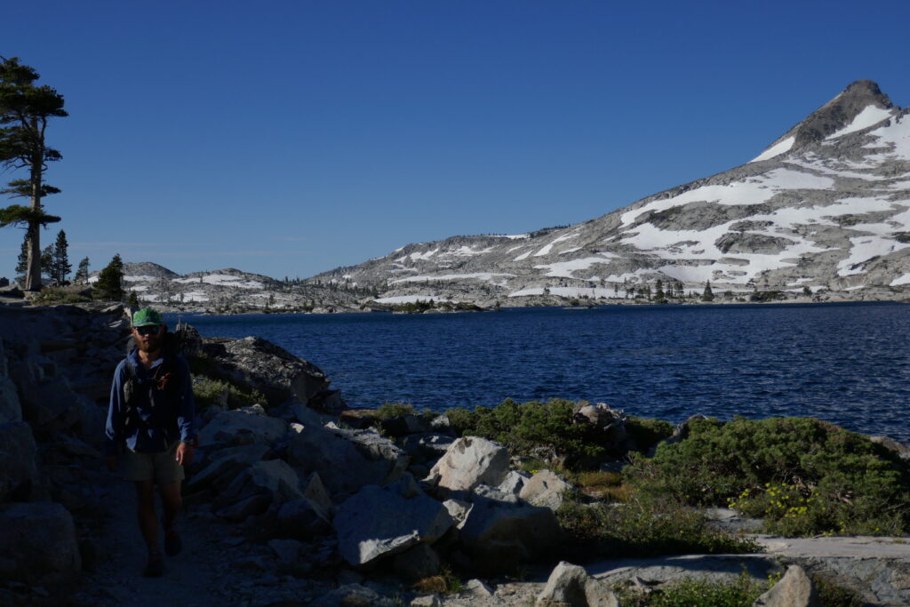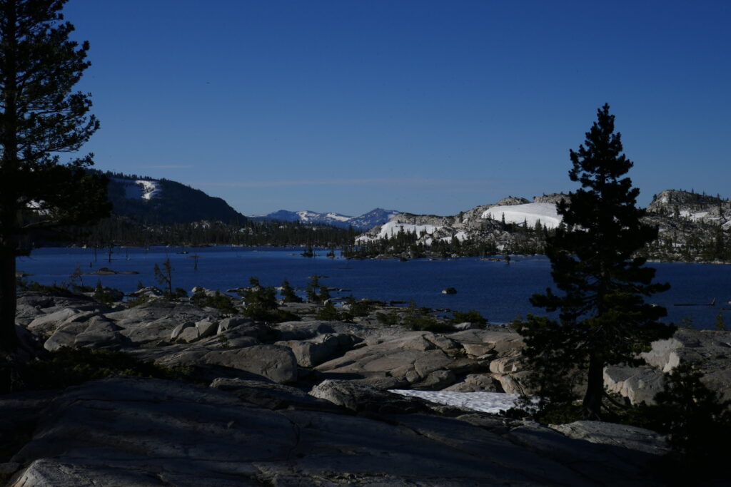 Die Nacht war mal wieder sternenklar gewesen, jedoch ein wenig hart auf dem so ebenen Felsboden, den wir zum Cowboycampen ausgesucht hatten. Wir hatten gestern die Grenze zur „Desolation Wilderness“ passiert, die im Sommer mit eine der schönsten Passagen des PCTs darstellt. Und selbst dieses Jahr, nachdem wir bereits die wunderschöne High Sierra in Schnee erlebt hatten, überraschte sie uns mit einzigartigen Seen und einer atemberaubenden Landschaft.