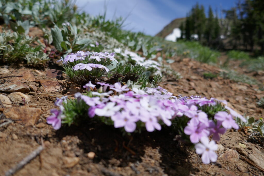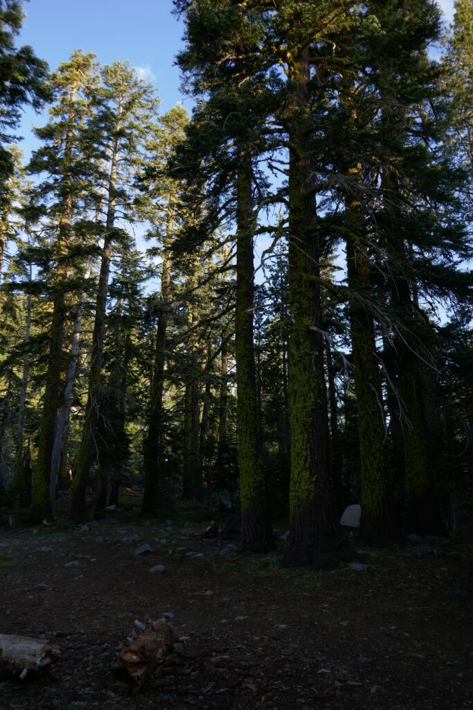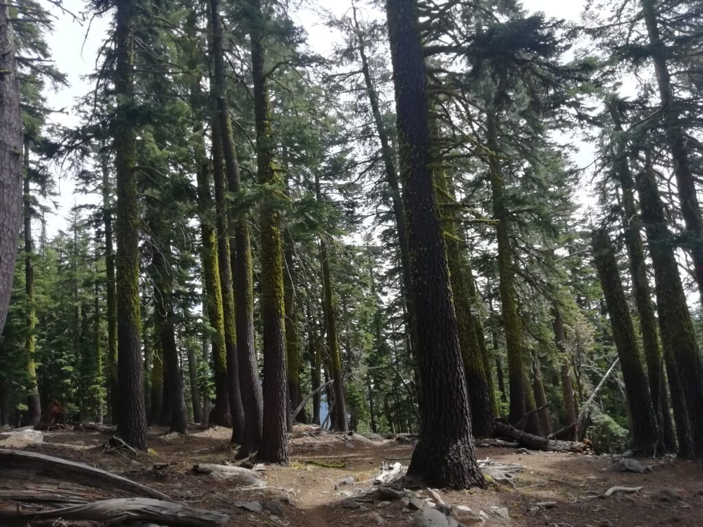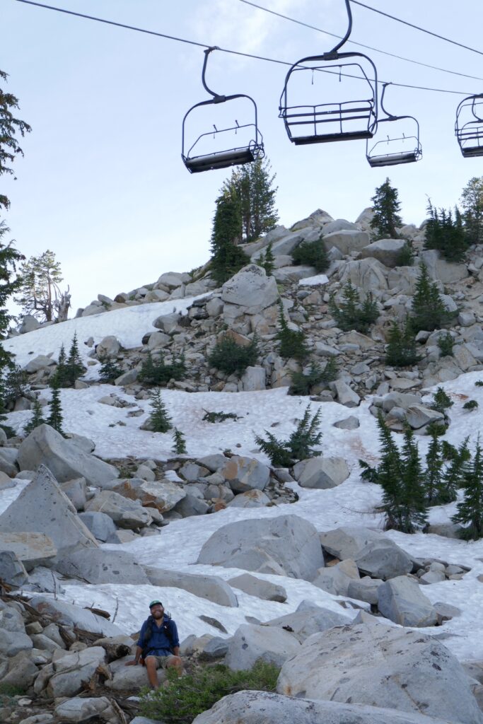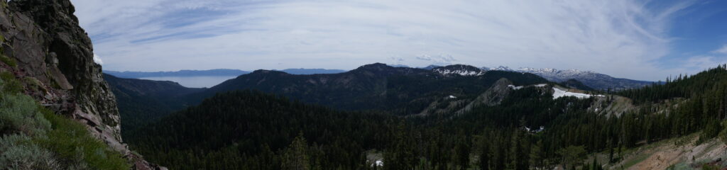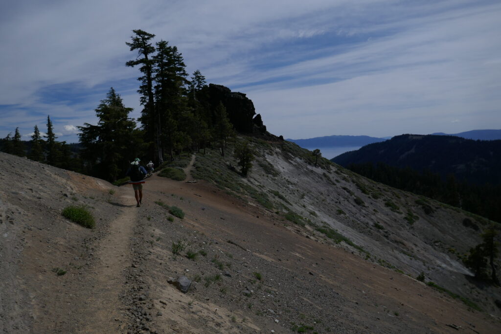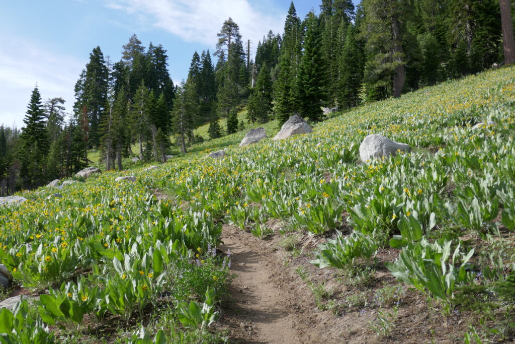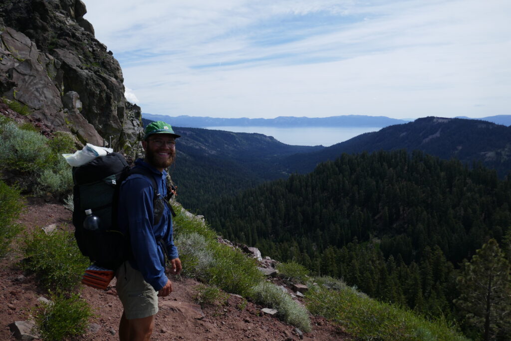 Der heutige Tag war ein sehr abwechslungsreicher. Wir liefen durch Blumenwiesen, Geröllfelder, Skigebiete und hohe Wälder voller Flechten. Zwischendurch gingen wir oft auf dem Grat und hatten so ungewöhnlich viele schöne Ausblicke. Wir konnten letzte Blicke auf Lake Tahoe genießen und sahen schneebedeckte Berge hinter uns.