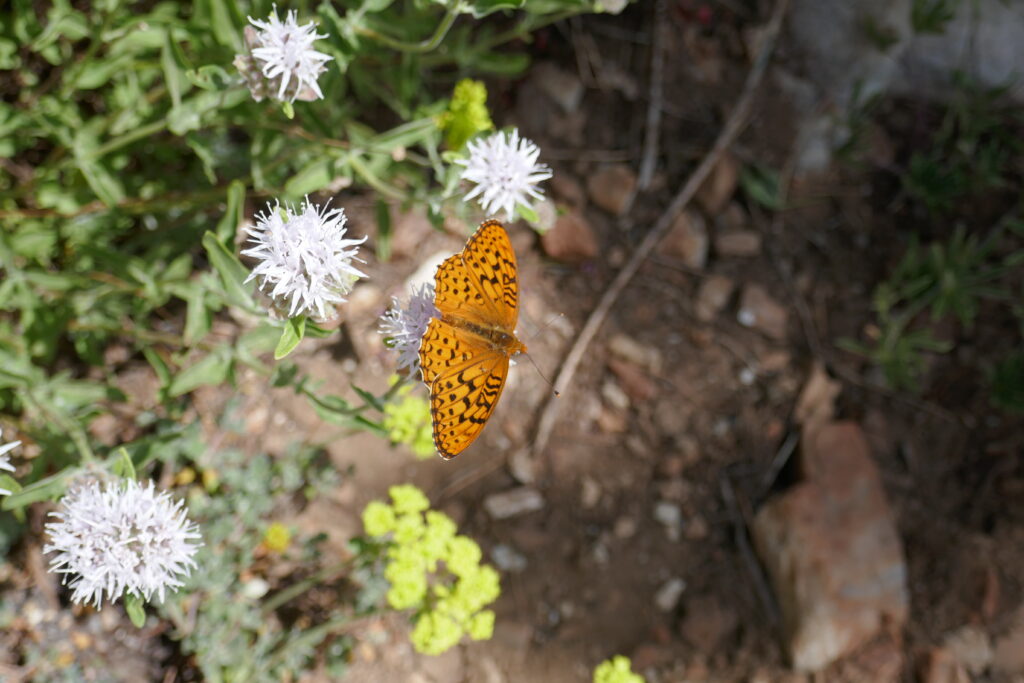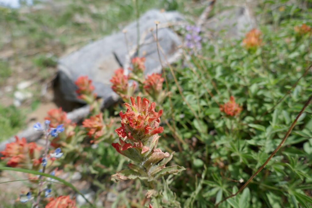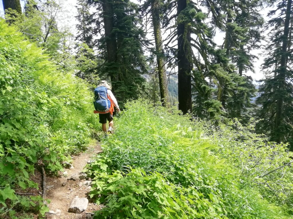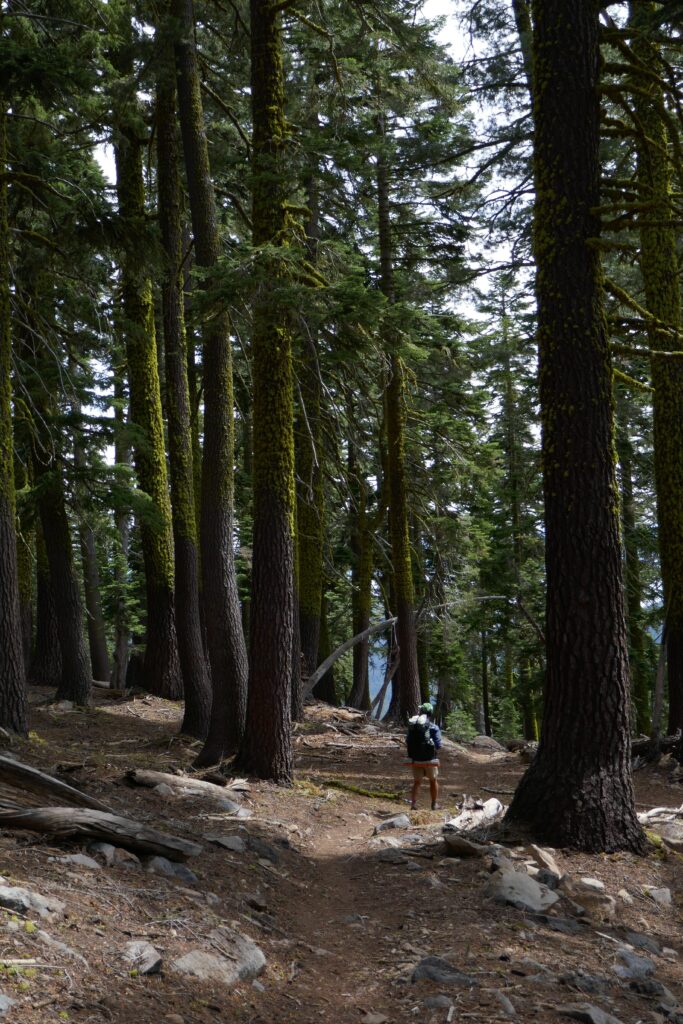 Ich möchte die Gelegenheit nutzen auf ein paar andere Sinne hinzuweisen. Der Fokus liegt hier immer auf dem Sehen, weil wir Fotos zeigen und es einfach einfacher ist Ausblicke zu beschreiben, als Gerüche. Dabei machen sie eigentlich den Großteil der Veränderungen aus. Oft kann man eine Veränderung der Landschaft riechen bevor man sie sieht. Man riecht die kühle Luft eines Schneefelds, kommt um die Ecke und sieht es. Man riecht, ob es in einem Wald feucht, oder trocken ist. Man läuft an einem sonnigen Berghang, riecht eine bestimmte Pflanze, sucht den Boden mit den Augen ab und findet sie. Geruch ist ein sehr wichtiger Orientierungssinn für PCTler. Vielleicht empfinden es auch deshalb viele als so schrecklich im Rauch der Waldbrände zu wandern. Ich schweife ab, ‚tschuldigung…