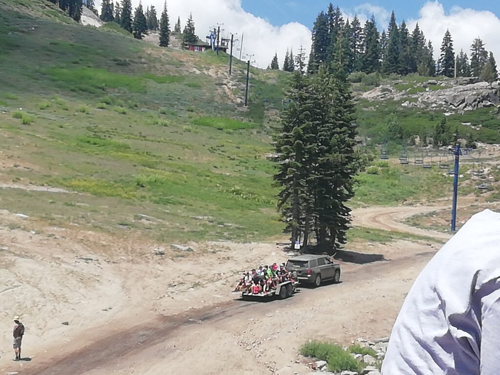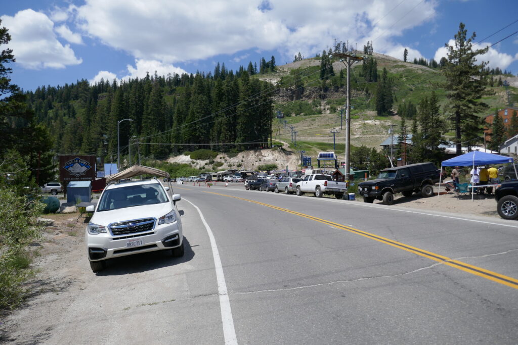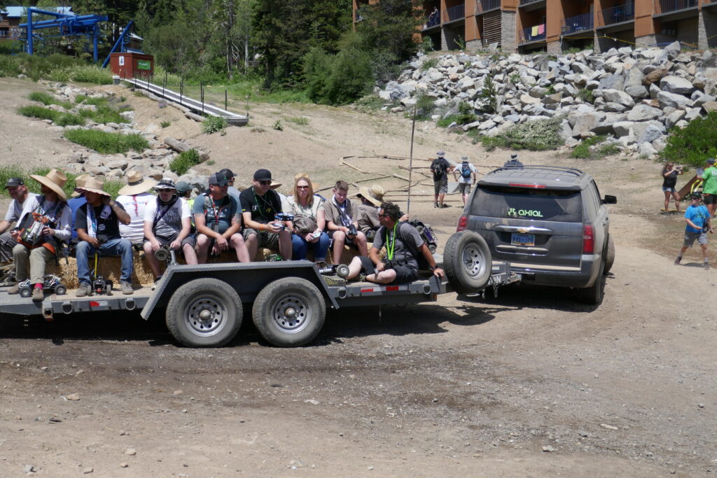 Als er uns abgelichtet hatte sind wir weiter zum Pass gegangen. Etwa 200 Meter nach links steht die Donner Pass Ranch. Dort bekommt man als PCTler ein Freibier (40 oz, also über 1 Liter) und der Burger war auch ganz gut. Als wir uns der Ranch näherten waren wir ziemlich überrascht. Überall liefen dicke Männer und Kinder mit ferngesteuerten Autos herum. Alles war mit Wohnmobilen und Pavillons zugestellt. Später wurde uns erklärt, dass die Leute auf den Skipisten Parcours für die ferngesteuerten Autos gebaut hatten und all diese Leute zum Spaß mit ihren Autos fuhren. Es gab keinen Wettbewerb, es ging nur um den Spaß. Ein bisschen skurril war das ganze schon. Hier haben wir Froggy und Ben das letzte Mal gesehen, da sie wohl zwei Tage Pause machen wollen.