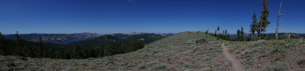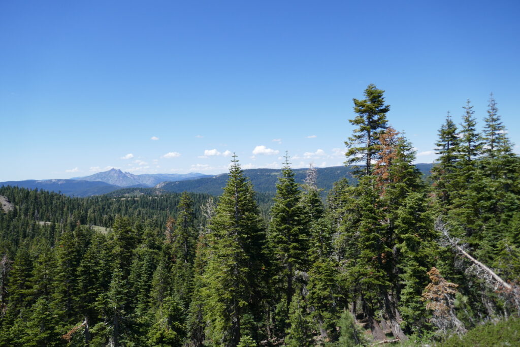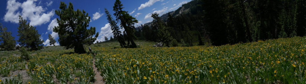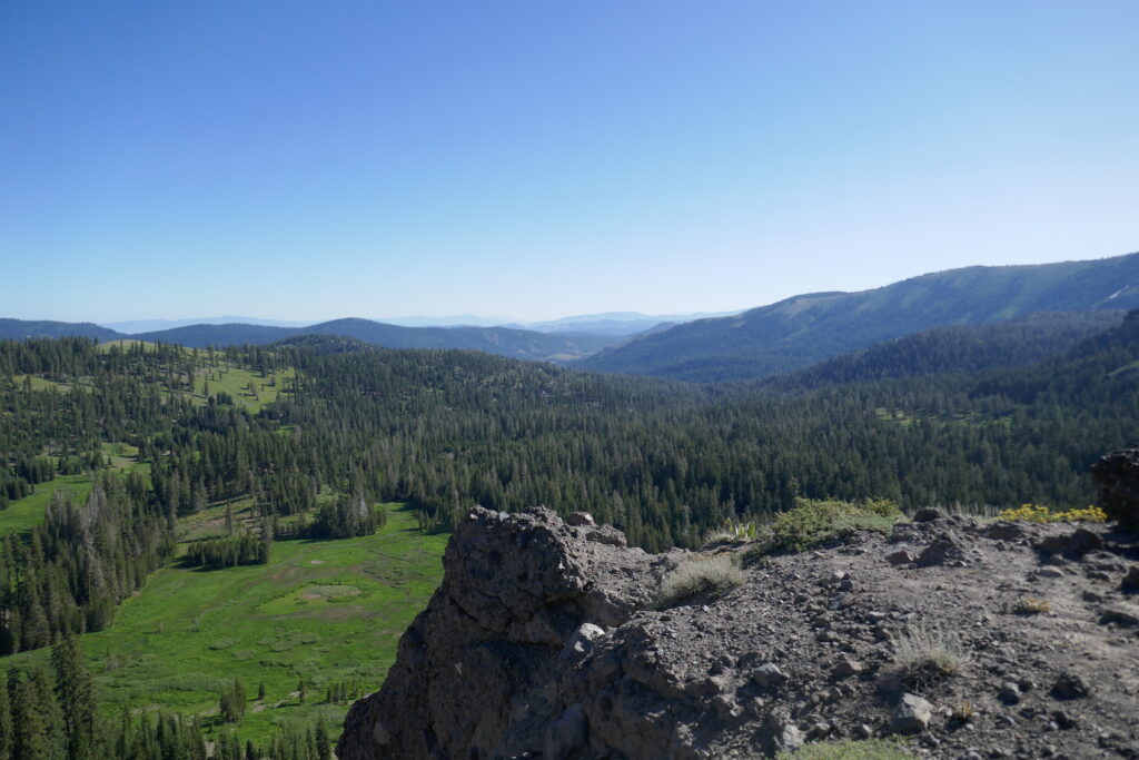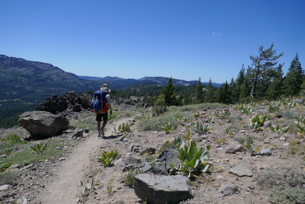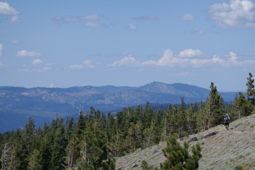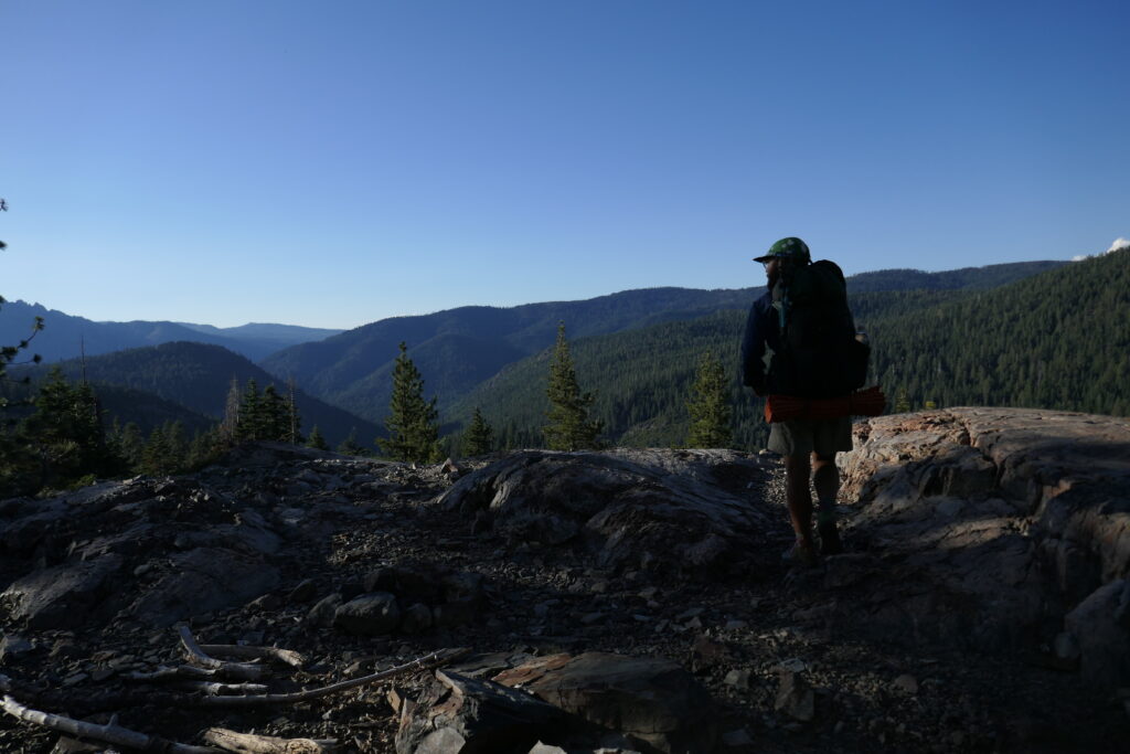 Heute gab es keine großartigen Veränderungen der Natur. Wir sind im Prinzip den gleichen Wanderweg gelaufen, wie die letzten Tage auch schon. Es ging teilweise auf steinigen Graten entlang, durch Blumenwiesen und Wälder. Langsam wird es langweilig. Vor allem in den bewaldeten Abschnitten. Da helfen gute Hörbücher, Podcasts und Musik.