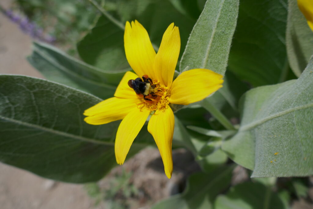 Abendessen haben wir mit Ausblick genossen. Die Ausblicke werden jedoch zunehmend langweiliger. Mittlerweile habe ich das Gefühl durch ein Mittelgebirge zu wandern. Was mich beeindruckt sind die Blumenwiesen und die Bienen und Hummeln. Es gibt hauptsächlich gelbe Blumen, aber auch rote, weiße und lilane. Manchmal sieht es aus, als hätte ein Gärtner eine Wiese geplant und gepflanzt.