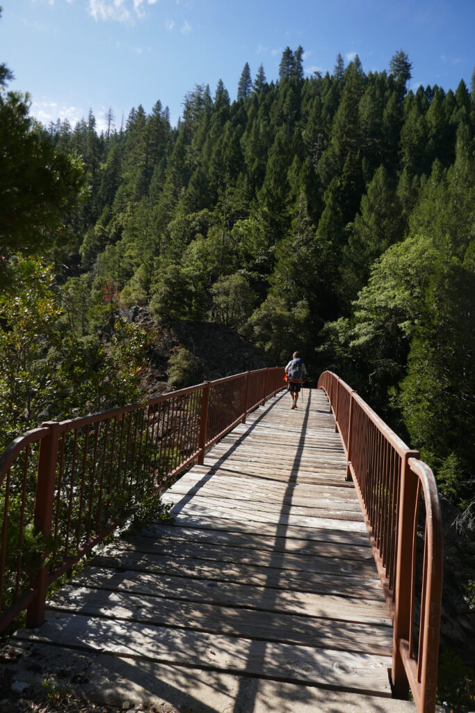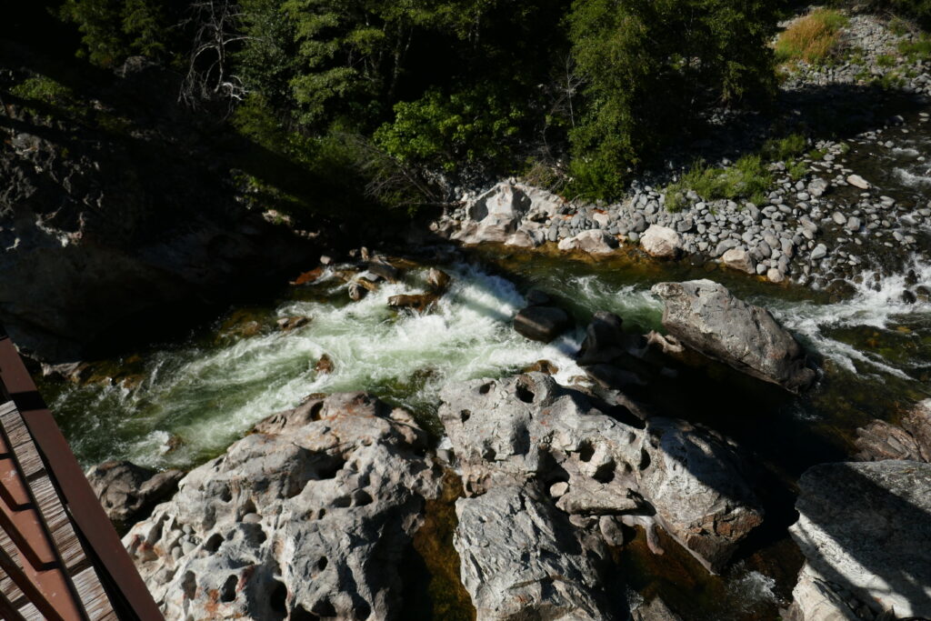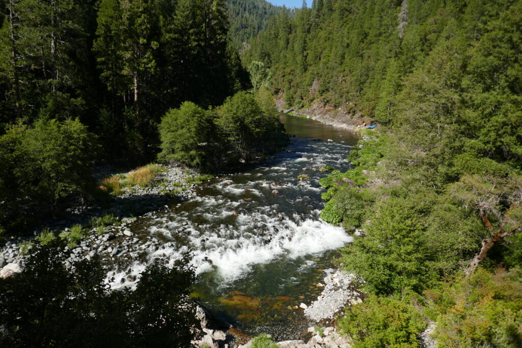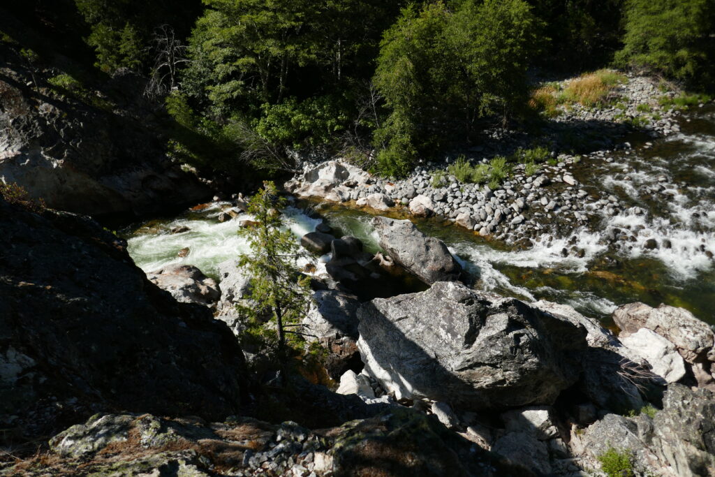 Landschaftlich war es heute ein bisschen langweilig. Wir sind vor allem durch den Wald gelaufen. Zwischendurch haben wir ein Nickerchen gemacht. Irgendwie waren wir ziemlich fertig. Der Tag gestern sitzt uns in den Knochen. Generell könnte man den Tag auch mit Abstieg zum Feather River betiteln. Es ging sehr viel bergab. Der Feather River war aber sehr schön, groß und wild.