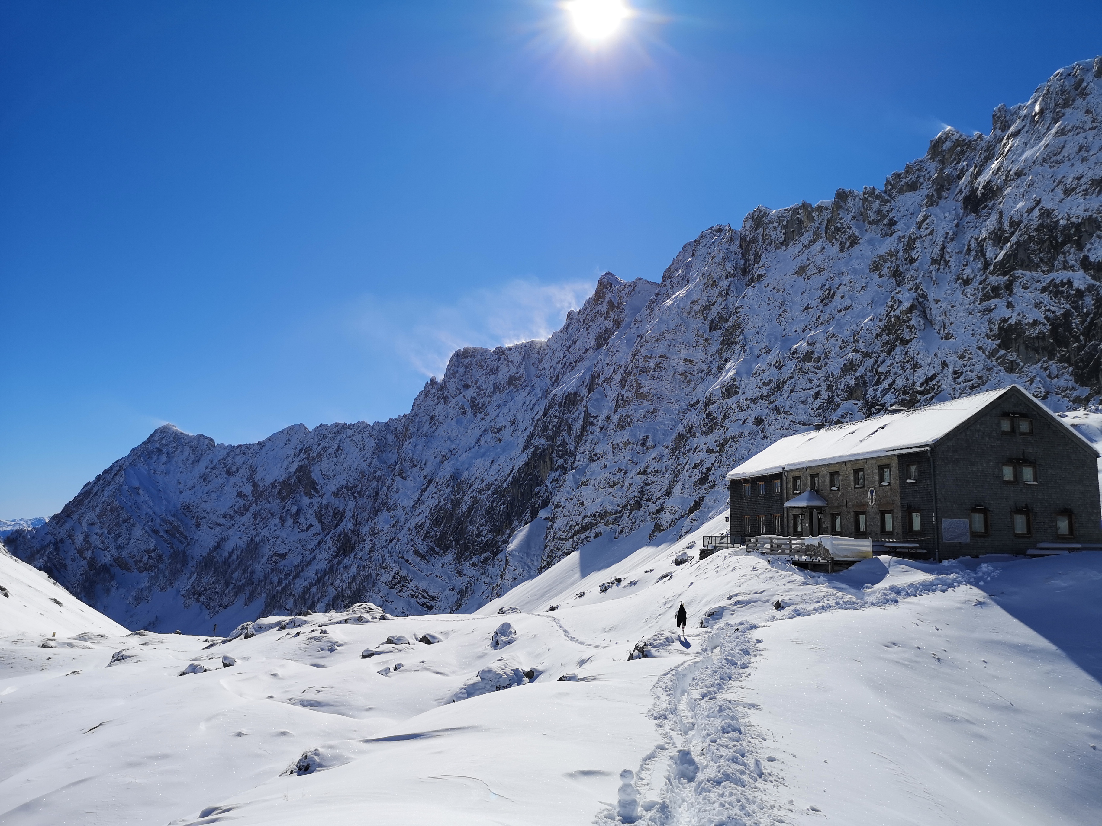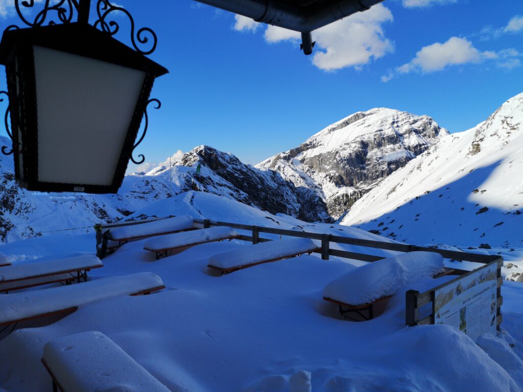 Diese Saison schloss ihre Zeit auf der Hütte lustiger weise gut ab. Denn vor acht Jahren war das letzte Mal so früh und unvermittelt so viel Schnee im Karwendel.